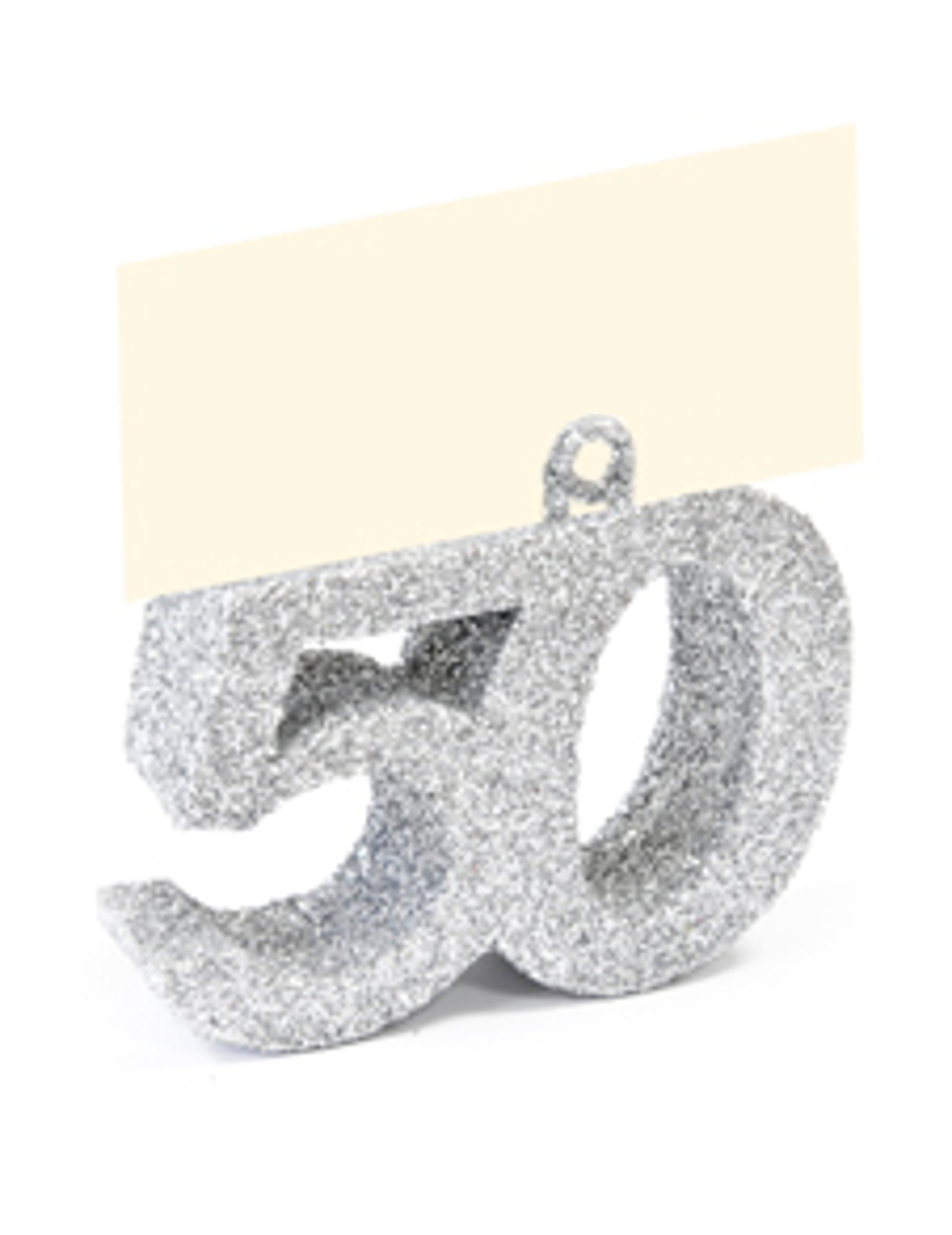 Oslavte tím své hosty místo karty v reliéfu zobrazující číslo 50. Oblečený ve stříbrném třpytu má rozměry 4 x 4 x 1,5 cm. Toto dekorace má kovovou tyč pro vložení jména vašich blízkých. Je nezbytným doplňkem pro dekorace na stůl postaráno během vašeho narozeninovou oslavu.