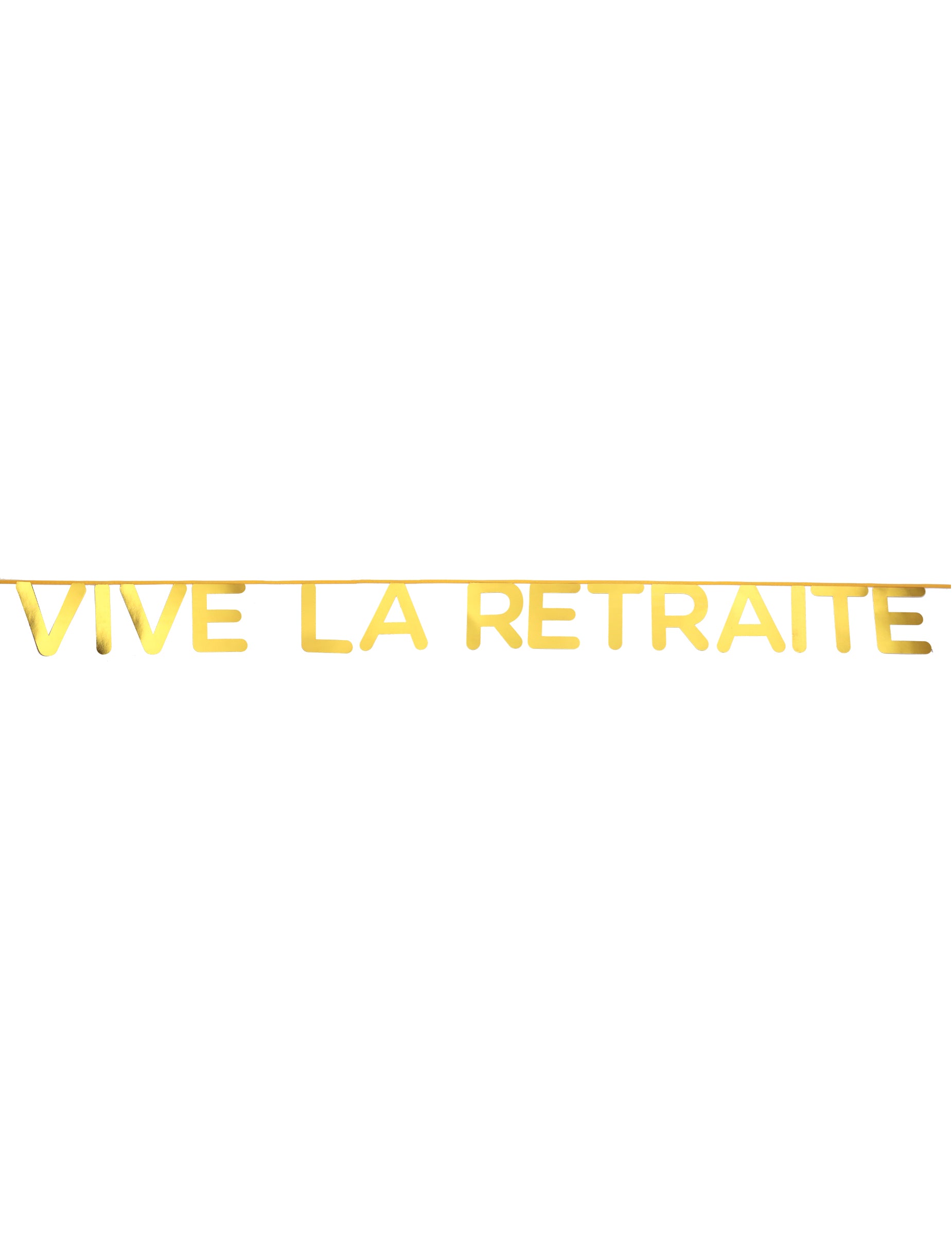 Oslavte s tím novou etapu života banner 2,5 metru. Má lesklou zlatou barvu a hrdě zobrazuje zprávu „Ať žiješ do důchodu“. Toto věnec z písmen instaluje se mrknutím oka díky jednoduchým upevňovacím prvkům na koncích. Ideální pro ozdobte svůj pokoj, všemu vnese slavnostní a elegantní nádech odchod do důchodu úspěšný.