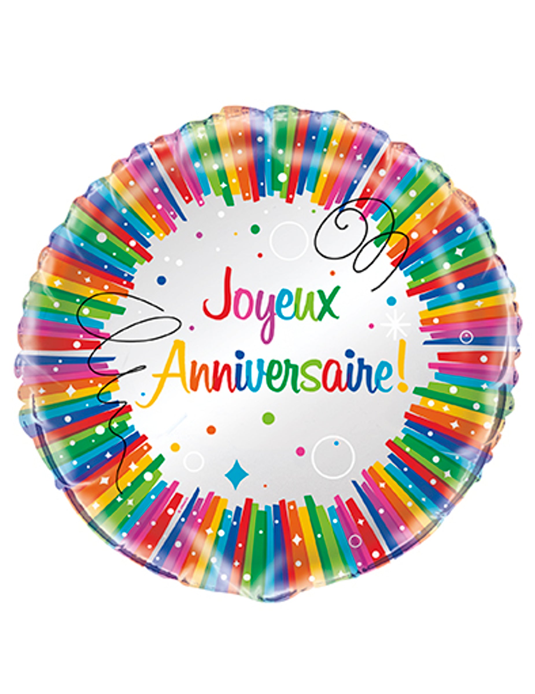 Toto balón navržený z hliníku má průměr přibližně 45 cm. Může být nafouknut vzduchem nebo heliem pro plovoucí efekt. Jeho vizuál se skládá z vícebarevného obrysu rámujícího slova „všechno nejlepší k narozeninám“ umístěné uprostřed na bílém pozadí. Toto balón je nezbytným doplňkem pro vylepšení vašeho dekorace pokoje během a narozeniny památný.