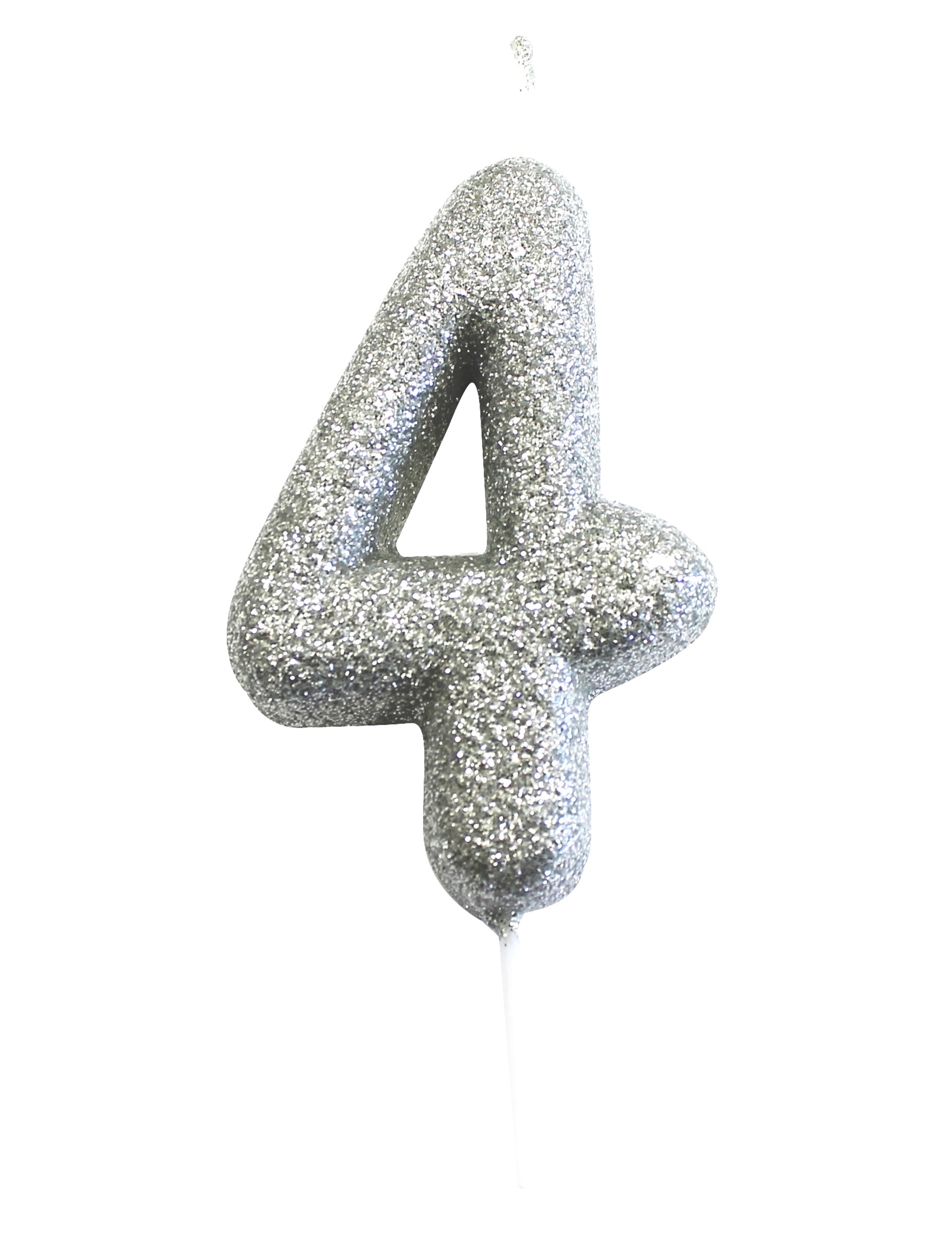 Vylepšete svůj dezert tímto narozeninová svíčka představující číslo 4. Je pokrytá třpytivými stříbrnými třpytkami a má bílý bodec pro snadné a stabilní připevnění. Toto svíčka ze 7 cm výška přinese slavnostní a elegantní nádech, kdyžnarozeniny milovaného člověka.