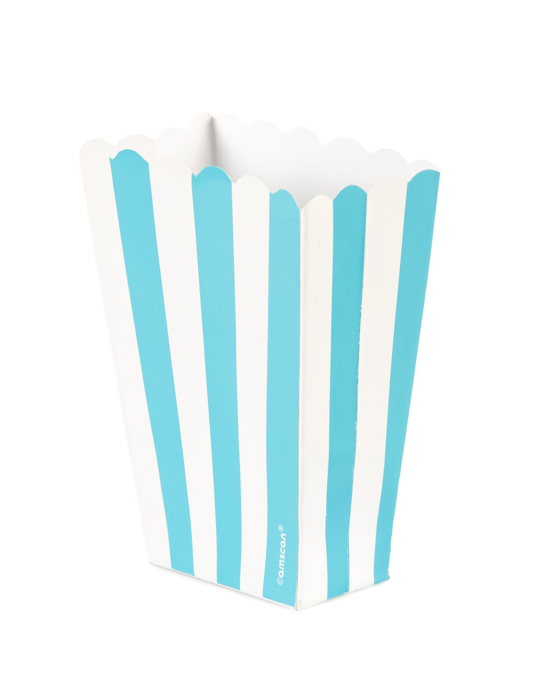 5 krabiček na popcorn v modrobílém kartonu s tyrkysovými pruhy 6,3 x 13,5 x 3,8 cm