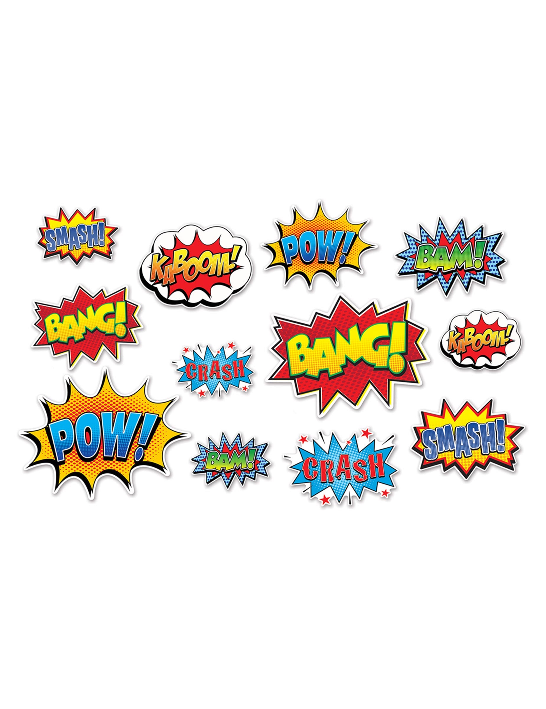 12 décorations murales en carton héros 15 à 31 cm vignettes bd