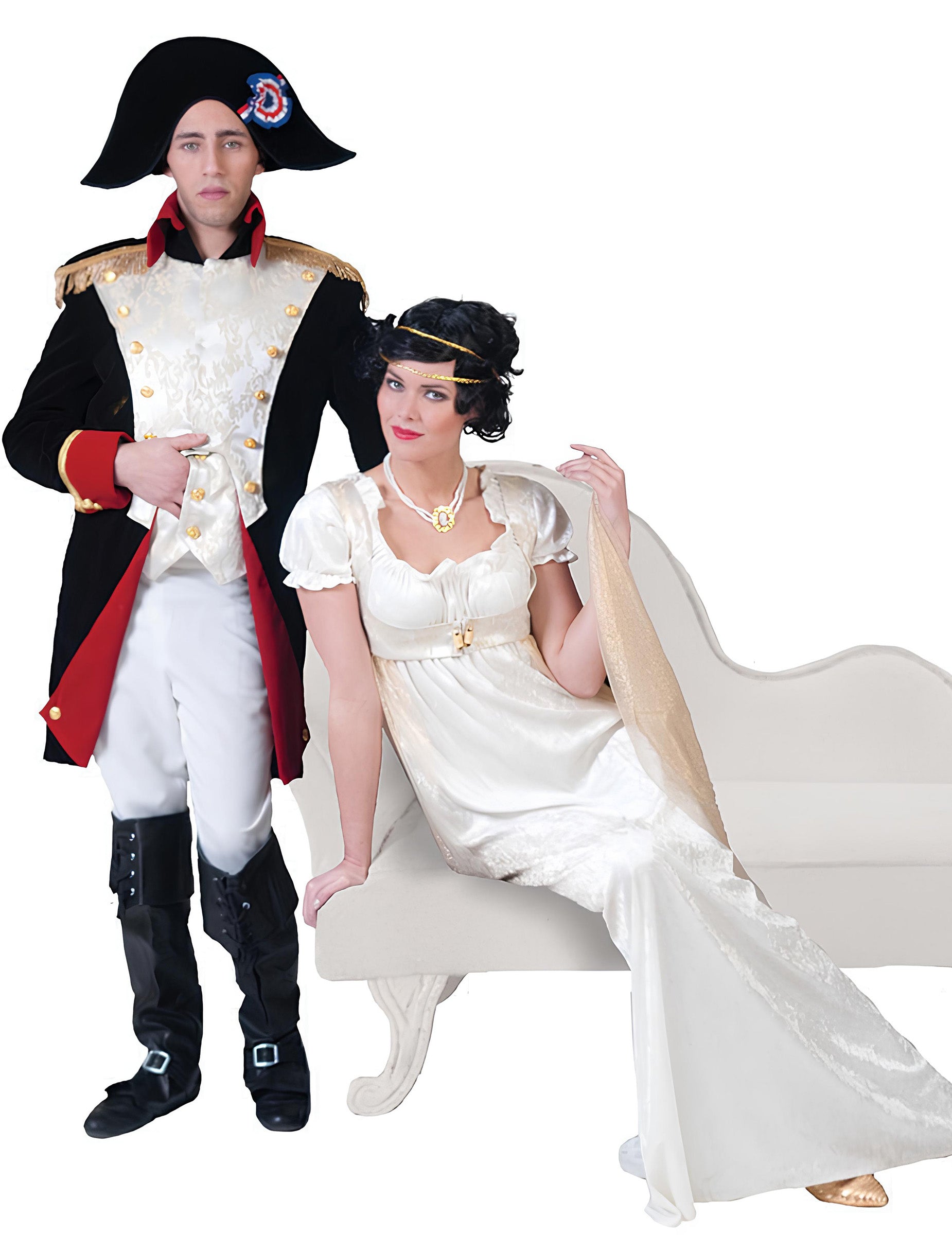 Tento luxusní pánský císařský kostým se skládá ze saka, kalhot a vesty. Vesta je ušita z krásné, propracované látky. Zdobí ji krásné zlaté knoflíky. Sako nabízí krásnou siluetu s třásňovými nárameníky a vysokým černočerveným límcem. Přední strana ladí s vestou a boky jsou černé. Manžety jsou červené se zlatým lemováním. Spodní část saka je ohrnutá s knoflíky a odhaluje červenou látku. Kalhoty jsou celé bílé a dokonale doplňují tento císařský kostým. Vyberte si tento luxusní pánský císařský kostým a nezůstaňte bez povšimnutí na karnevalu ani při historické rekonstrukci!