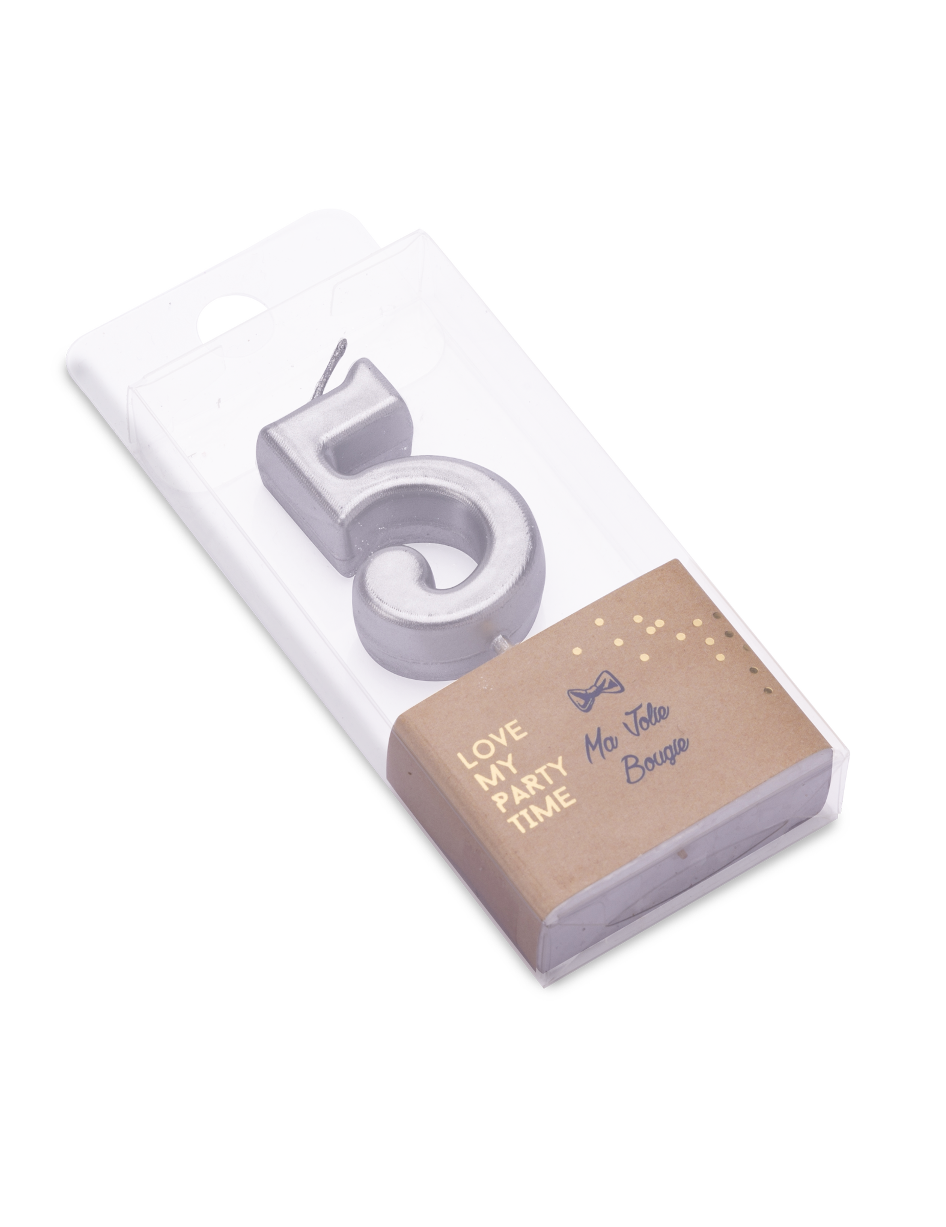 Apportez une touche de brillance à votre fête avec cette bougie d'anniversaire en cire. Son design argenté au fini métallisé et sa taille de 4,3 cm mettent en valeur le chiffre 5 sur vos créations pâtissières. Pour une installation facile, un support en plastique est placé sous la bougie, garantissant une excellente tenue sur votre gâteau d'anniversaire. Cette bougie d'anniversaire est l'élément de finition parfait pour décorer avec élégance un gâteau d'anniversaire.