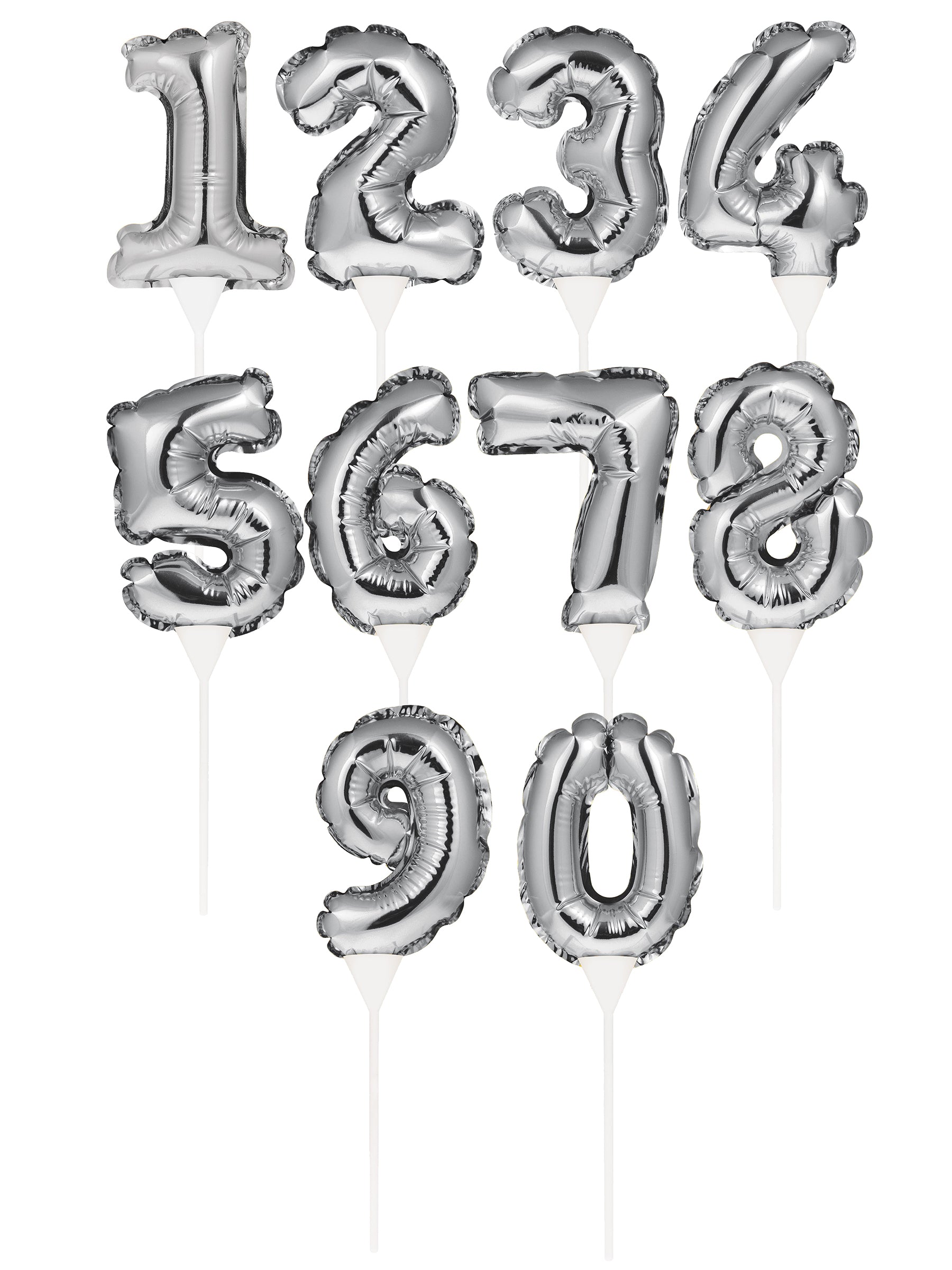 Vylepšete tím své cukrářské výtvory dortový doplněk unikátní. Toto výběr dortu je zdobena a mini balónek s číslem ve stříbrném hliníku, k dispozici pro všechna čísla od 0 do 9.