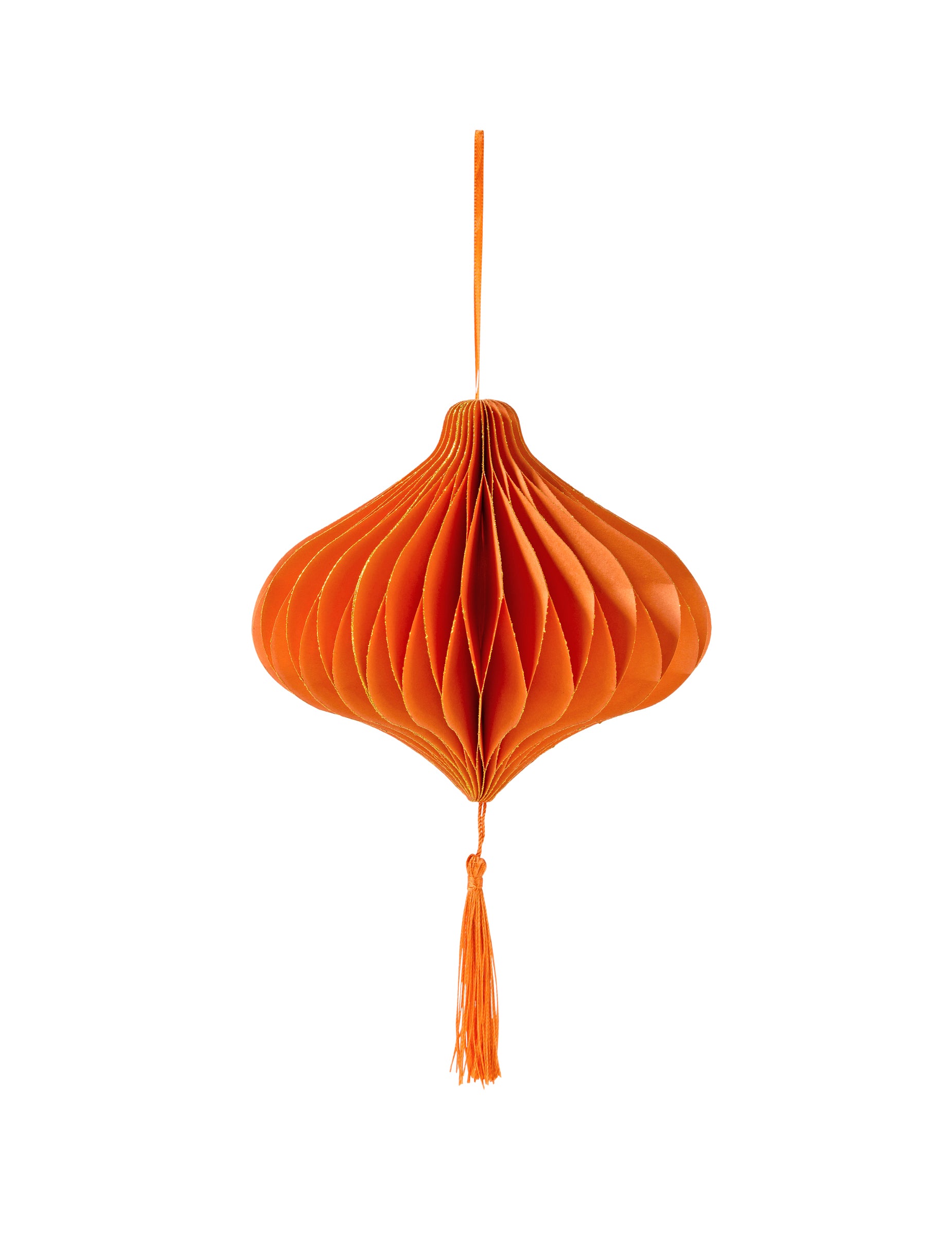 Dodejte své akci barevný nádech s tímto dekorace ve formě závěsná koule. Vyrobeno z oranžového voštinového papíru, má průměr 15 cm cca. Malá šňůrka umístěná v horní části vám umožní snadnou instalaci, kam budete chtít. Tento doplněk je ideální pro vylepšení atmosféry vašeho pokoje během a tématická párty nebo narozeniny.
