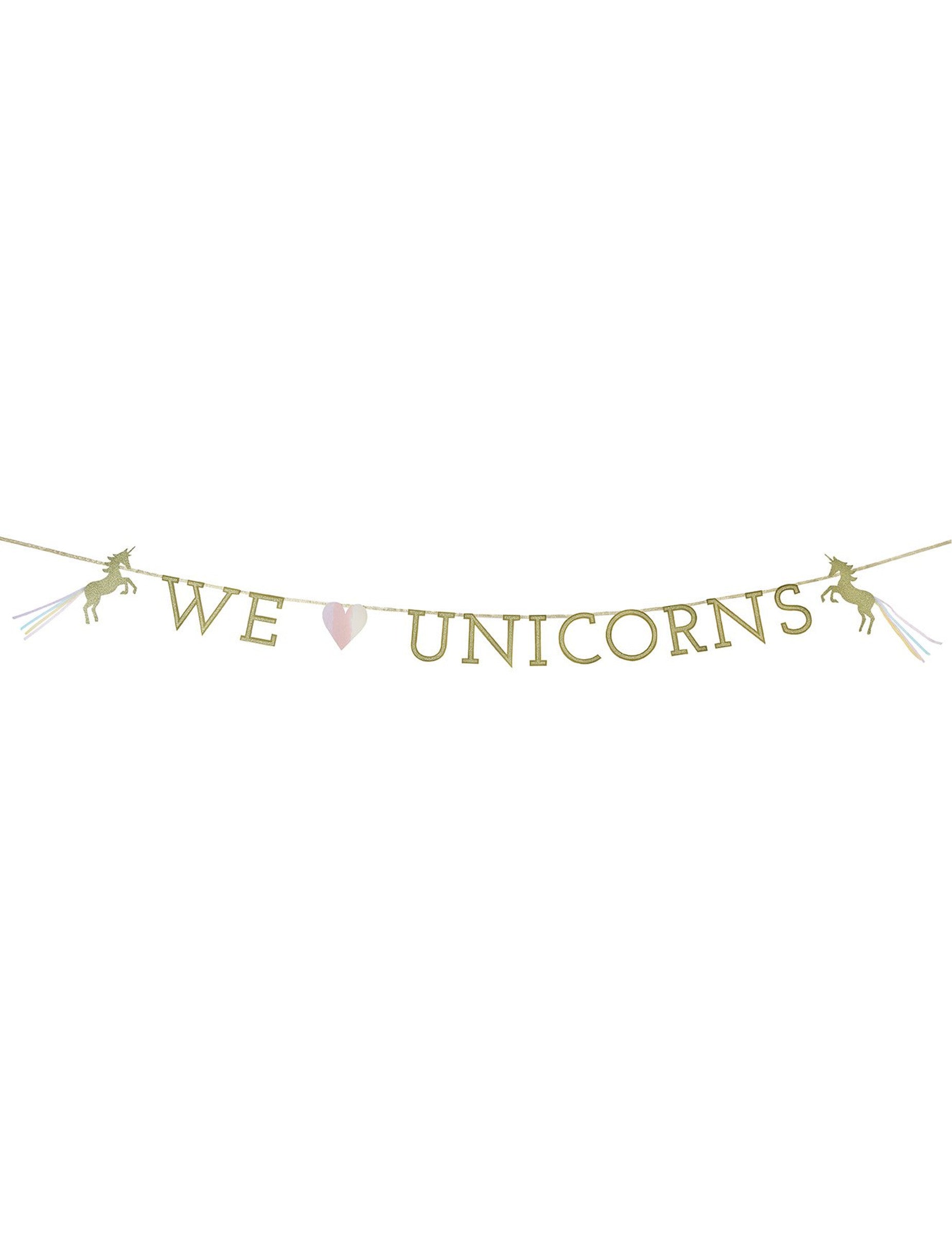 Milujeme jednorožce kartonová girlanda 3 m zlatá narozeninová