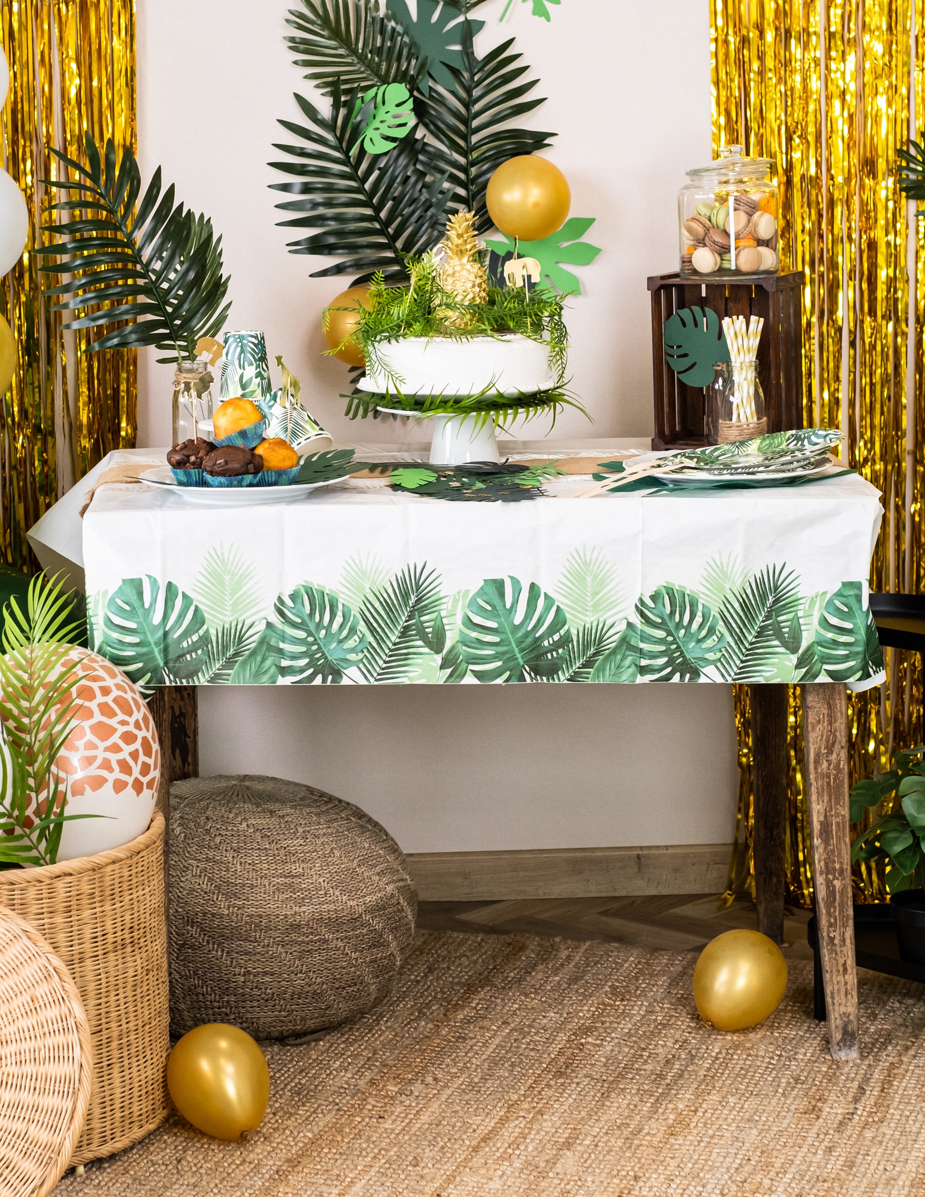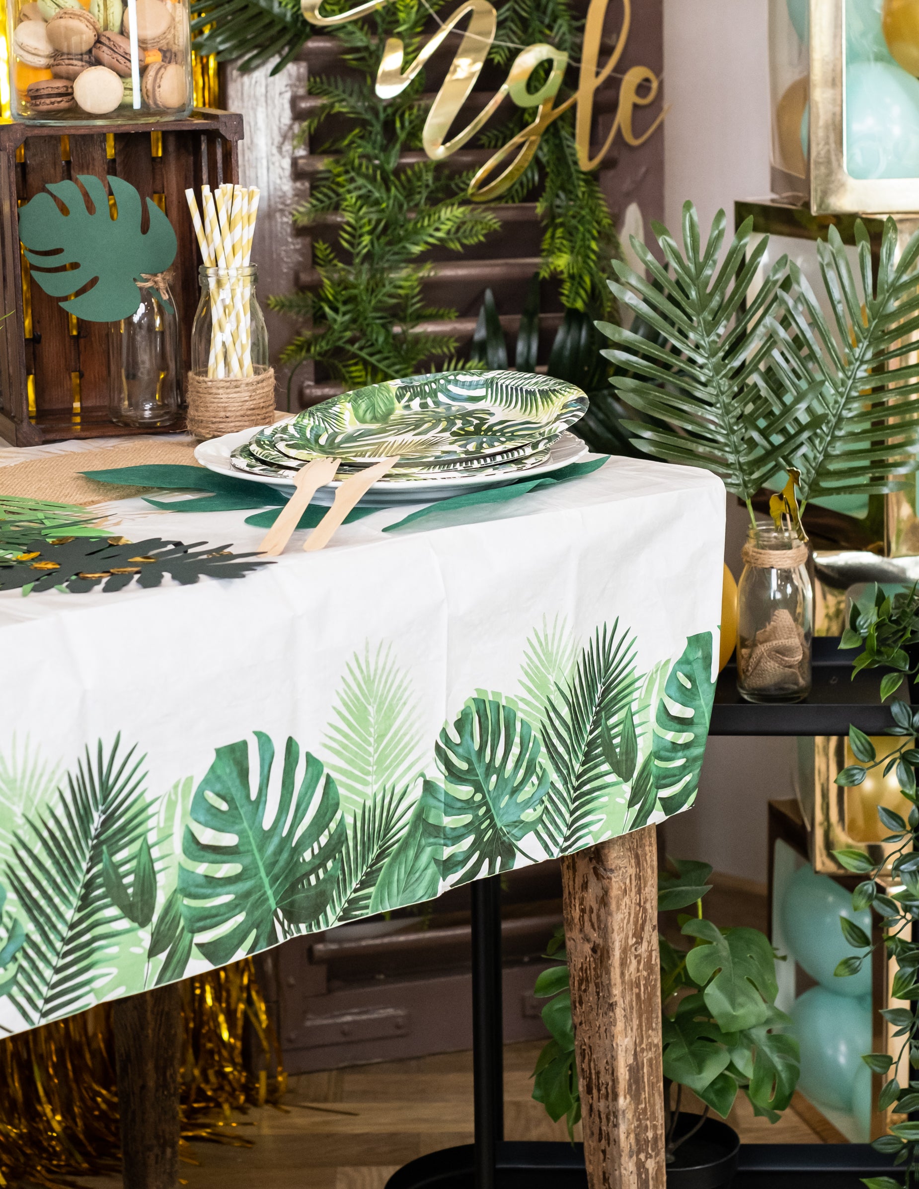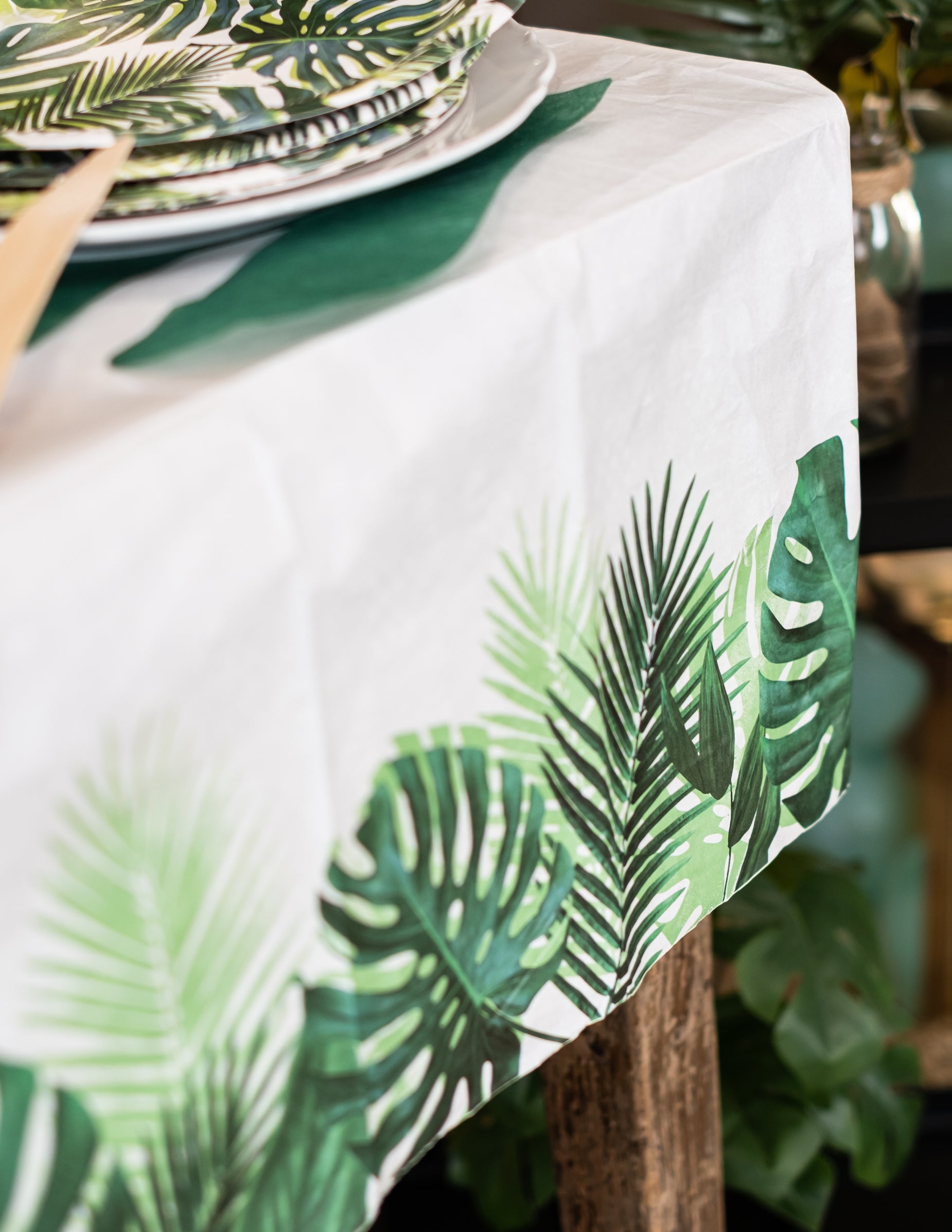 Bílý a zelený ubrus z tropického papíru 180 x 120 cm