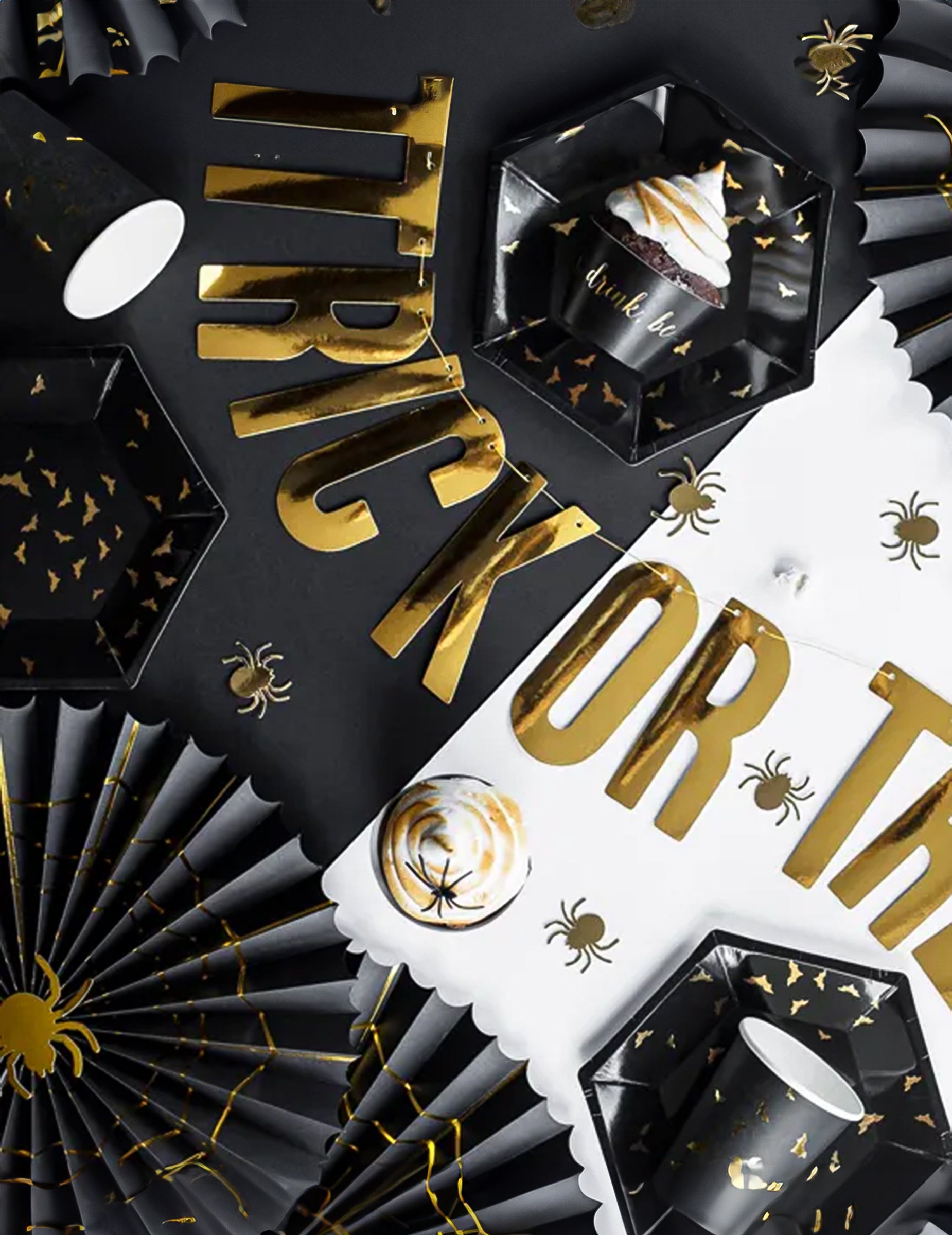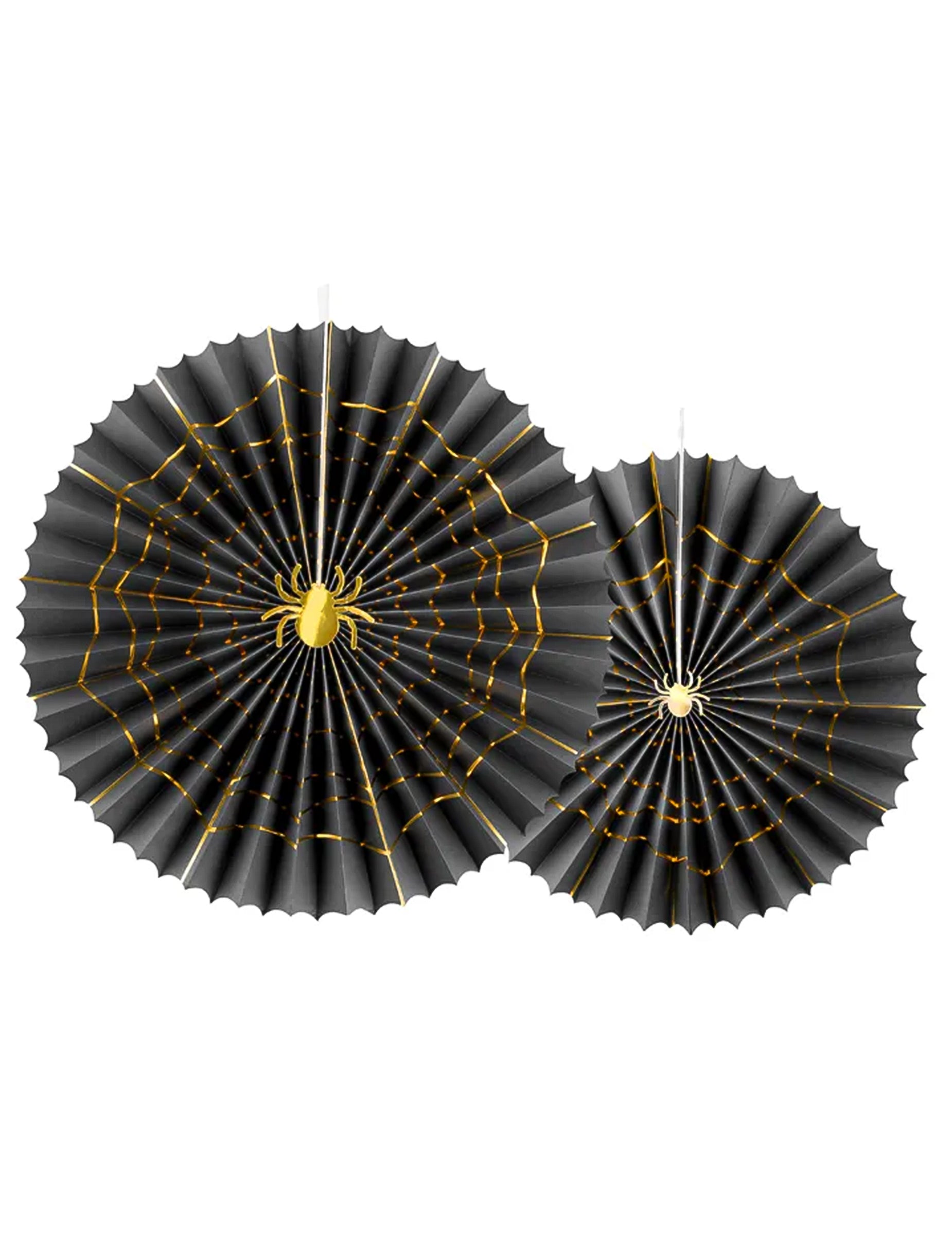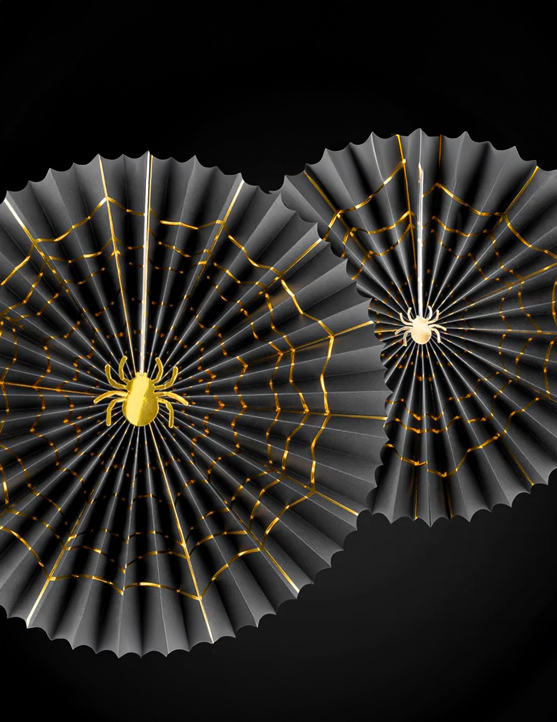 2 ozdobné černé a zlaté pavoučí papírové rozety 32 a 40 cm na halloween