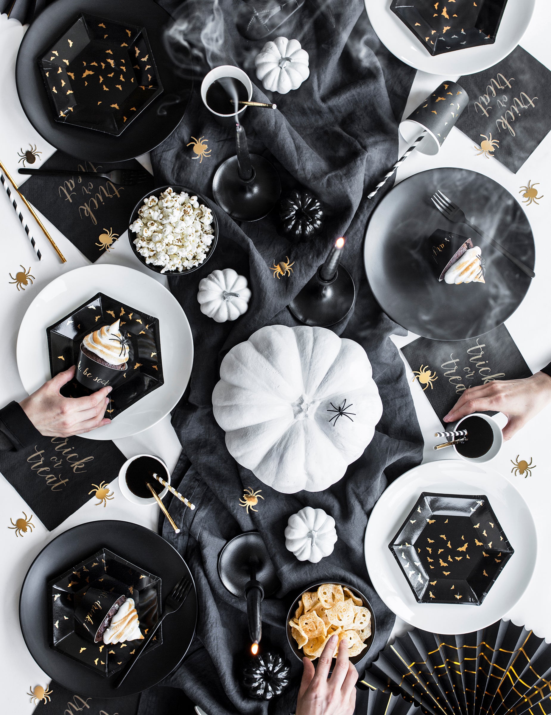 Vylepšete svůj párty stůl touto sadou 6 kusů desky v kartonu. Představují originální šestiúhelníkový tvar a mají průměr 20 cm. Výzdoba se skládá z pěkných netopýr zlatá na intenzivním černém pozadí. Tyto desky bude perfektní na ozdobu vaší recepcehalloween s elegancí.