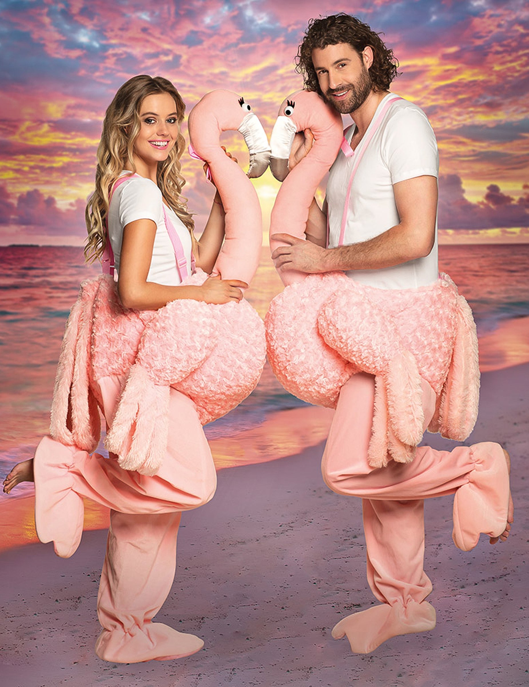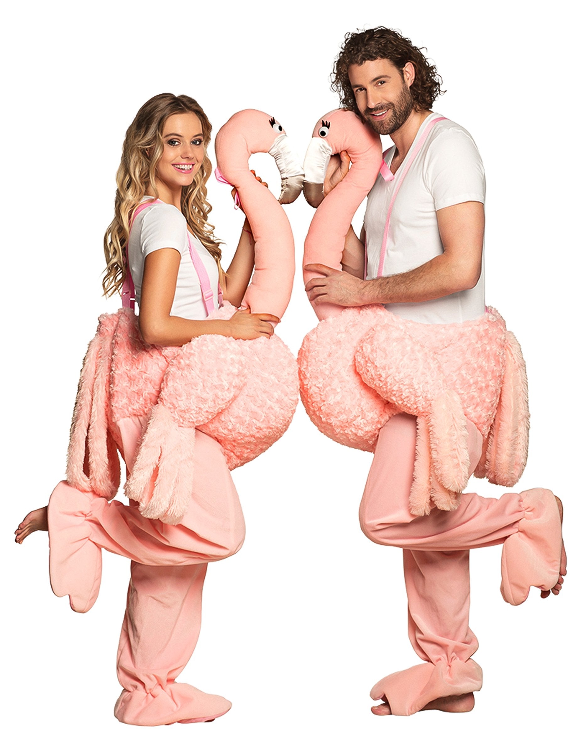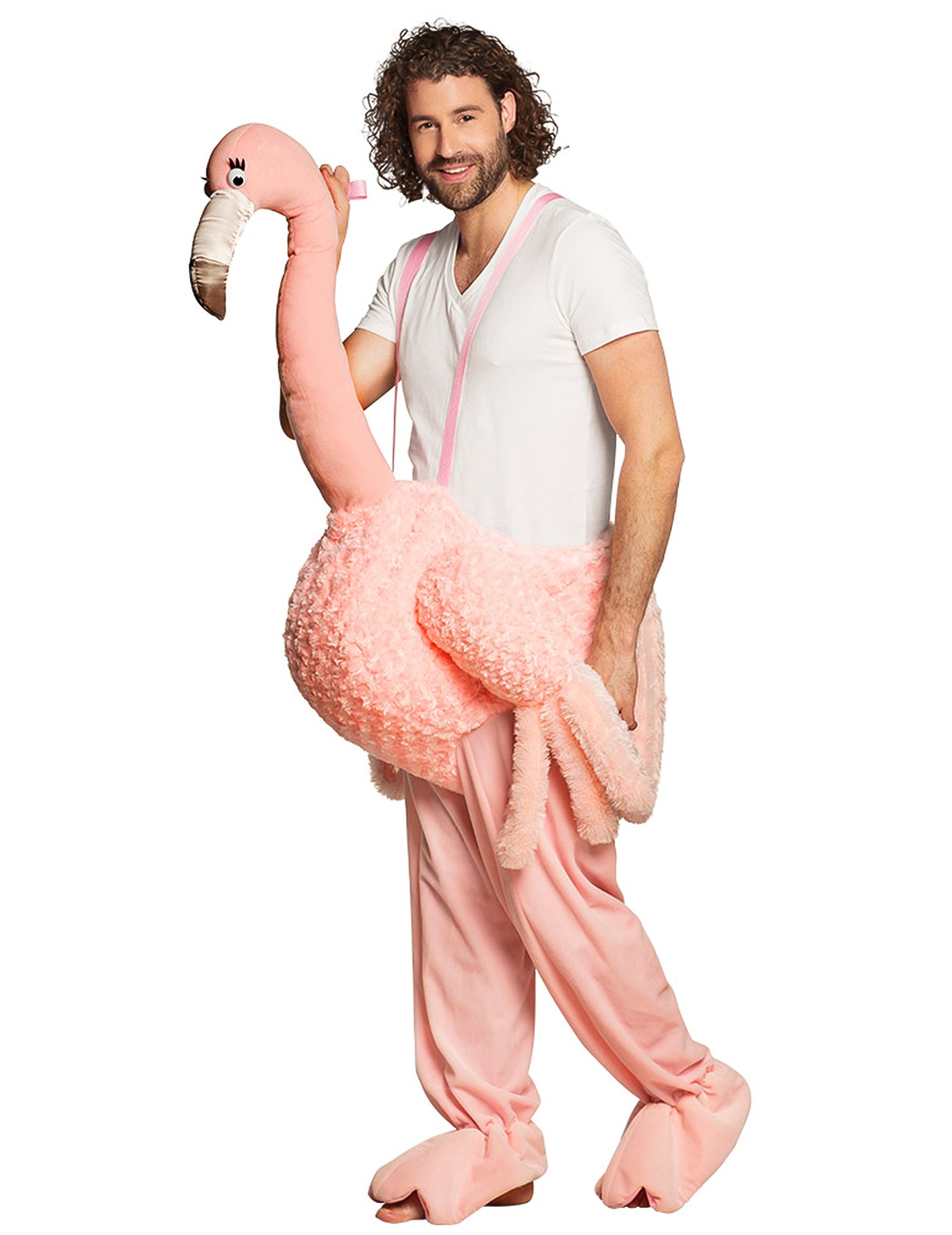 Tento kostým plameňáka je pro ženy. Skládá se z overalu. Overal je růžový. Nohavičky napodobují zvířecí tlapky. V pase je kostým objemný s dlouhým krkem a krásnou plameňákovou hlavou. Kostým drží na místě růžové ramínka. Tento kostým se bude perfektně hodit na kostýmní párty s motivem zvířat nebo na karneval!
