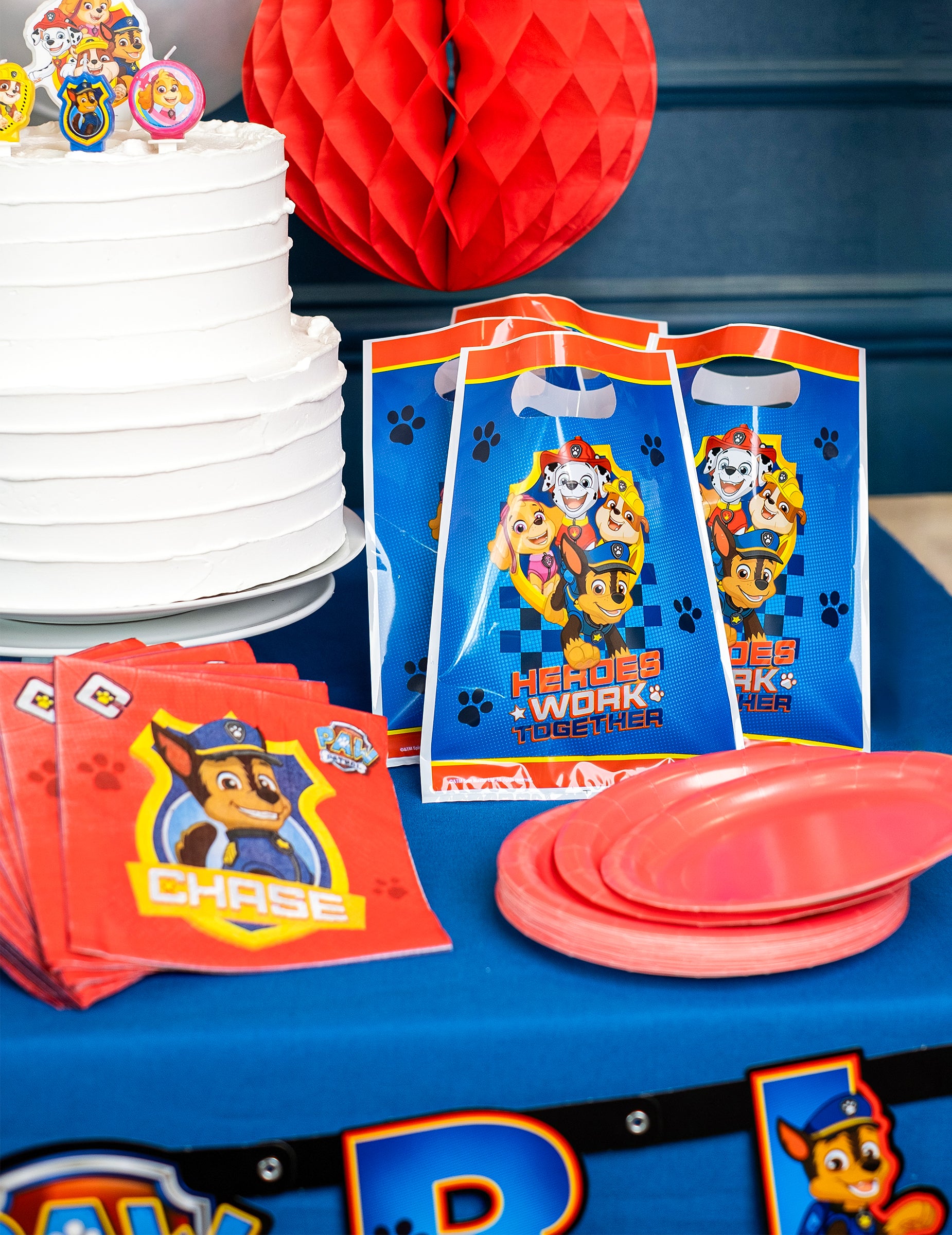Tato sada obsahuje 8 oficiálně licencovaných plastových sáčků na dárky s motivem Tlapkové patroly. Tyto sáčky mají modré pozadí s červeným pruhem na obou koncích. Uprostřed sáčku jsou vyobrazeni hrdinové Skye, Marshall, Chase a Rubble. Tyto sáčky jsou ideální pro uložení dárků a pamlsků, které vaše dítě a jeho kamarádi objeví například během narozeninového honby za pokladem!