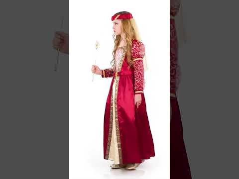 Tento dívčí kostým středověké princezny obsahuje šaty s krinolínovou spodničkou a čelenku se závojem. Dlouhé šaty jsou vyrobeny z červené saténové látky. Uprostřed poprsí je sedlo s rocardovými motivy. Krásný černobílý a zlatý lem zdůrazňuje křivky těchto krásných šatů. Dlouhé rukávy jsou lemovány červeným závojem se zlatými vzory. Pas stahuje falešný pásek. Spodní část šatů je rozšířená. Pod šaty je krinolínová spodnička, která zachovává tvar těchto středověkých princeznovských šatů. Středověká čelenka z imitace červeného sametu se zlatým lemem a zlatým závojem doplňuje tento kostým středověké princezny. S tímto kostýmem proměňte svou dceru v nejkrásnější princeznu v celém království na karneval, tematickou narozeninovou oslavu v kostýmu nebo dokonce na středověký festival.