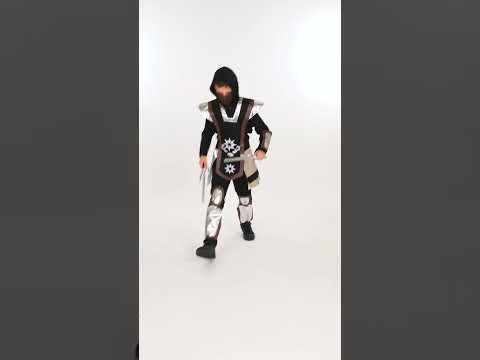 Tento dětský nindža kostým se skládá z topu s kapucí, kalhot, brnění, opasku, masky, pout, chráničů nohou a chráničů kolen (zbraně a boty nejsou součástí balení). Top a kalhoty jsou černé. Trup pokrývá látkové brnění. Je černé s hnědými a stříbrnošedými okraji. Pouta, chrániče nohou a chrániče kolen zakrývají paže a nohy. Jsou upevněny gumičkami. Nakonec opasek a maska dotvářejí celkový vzhled. S tímto nindžovským kostýmem se vaše dítě stane králem karnevalu.