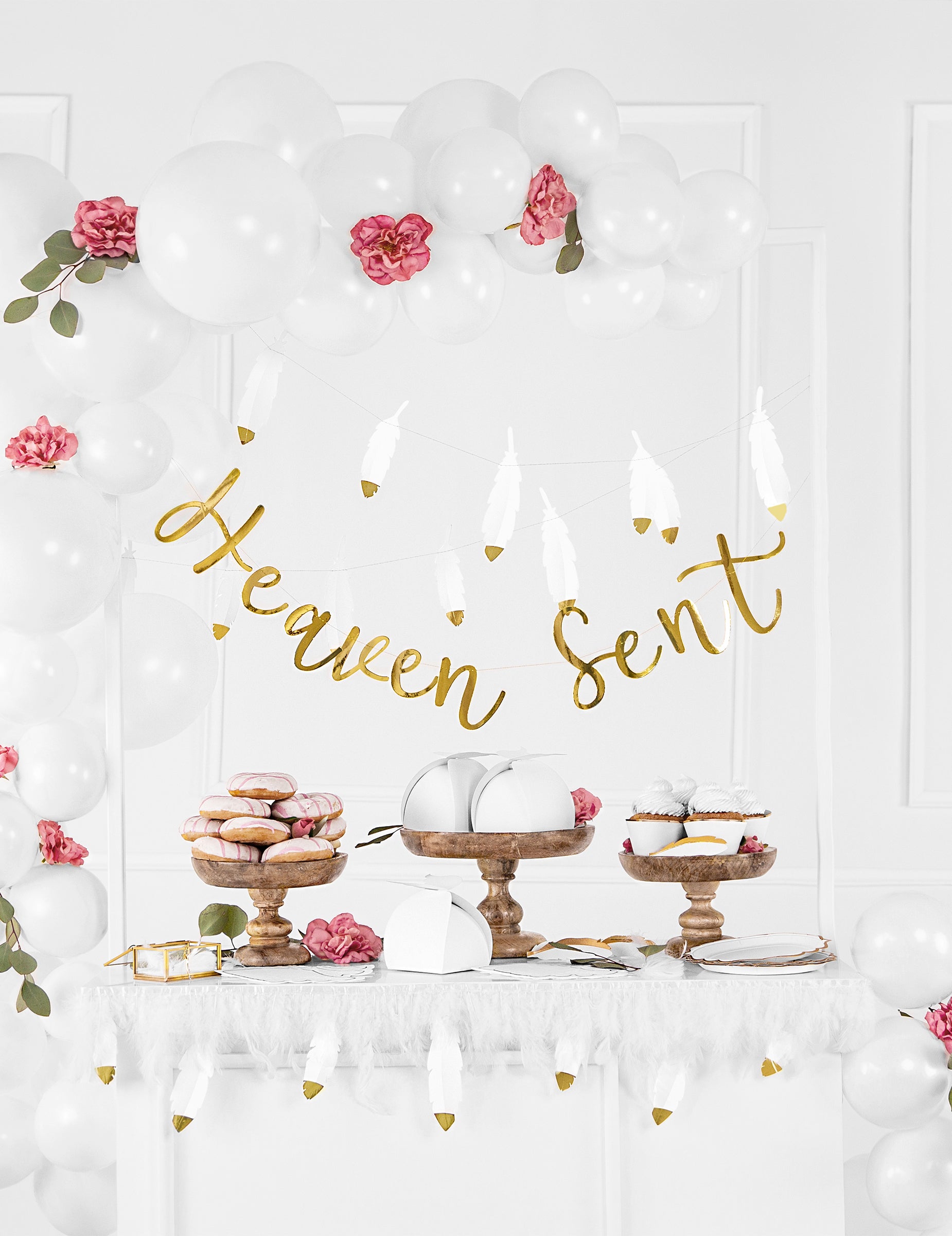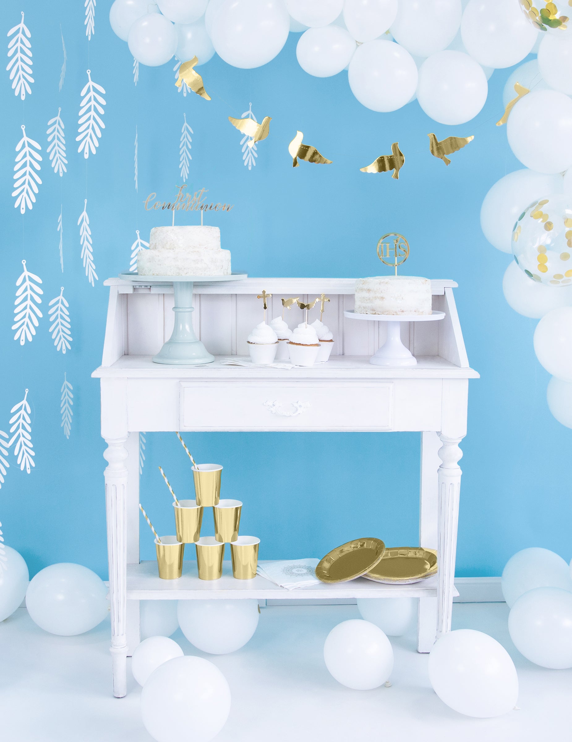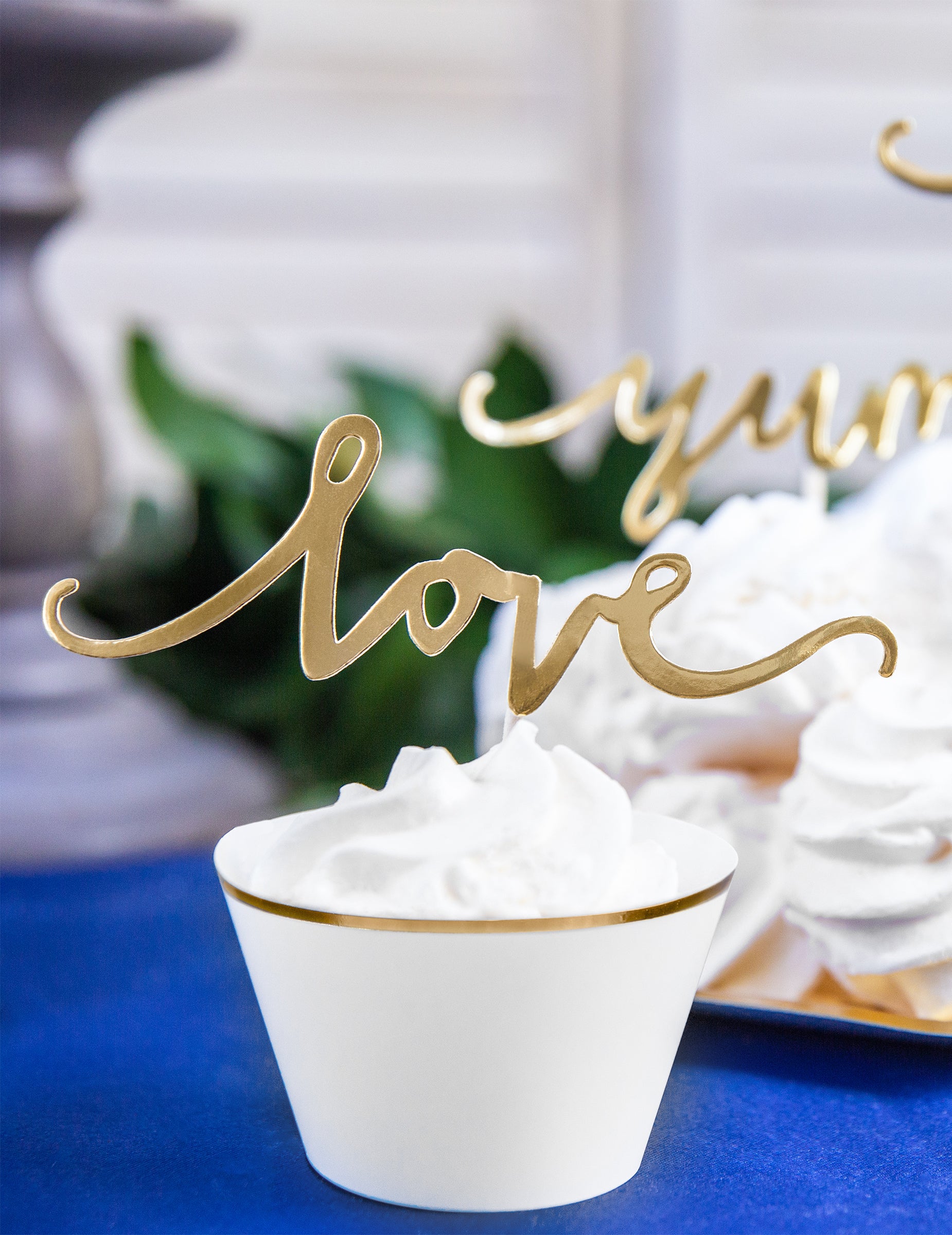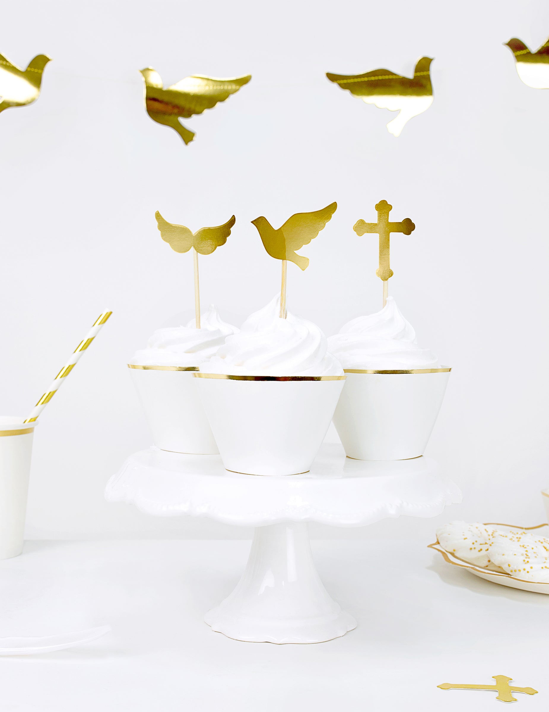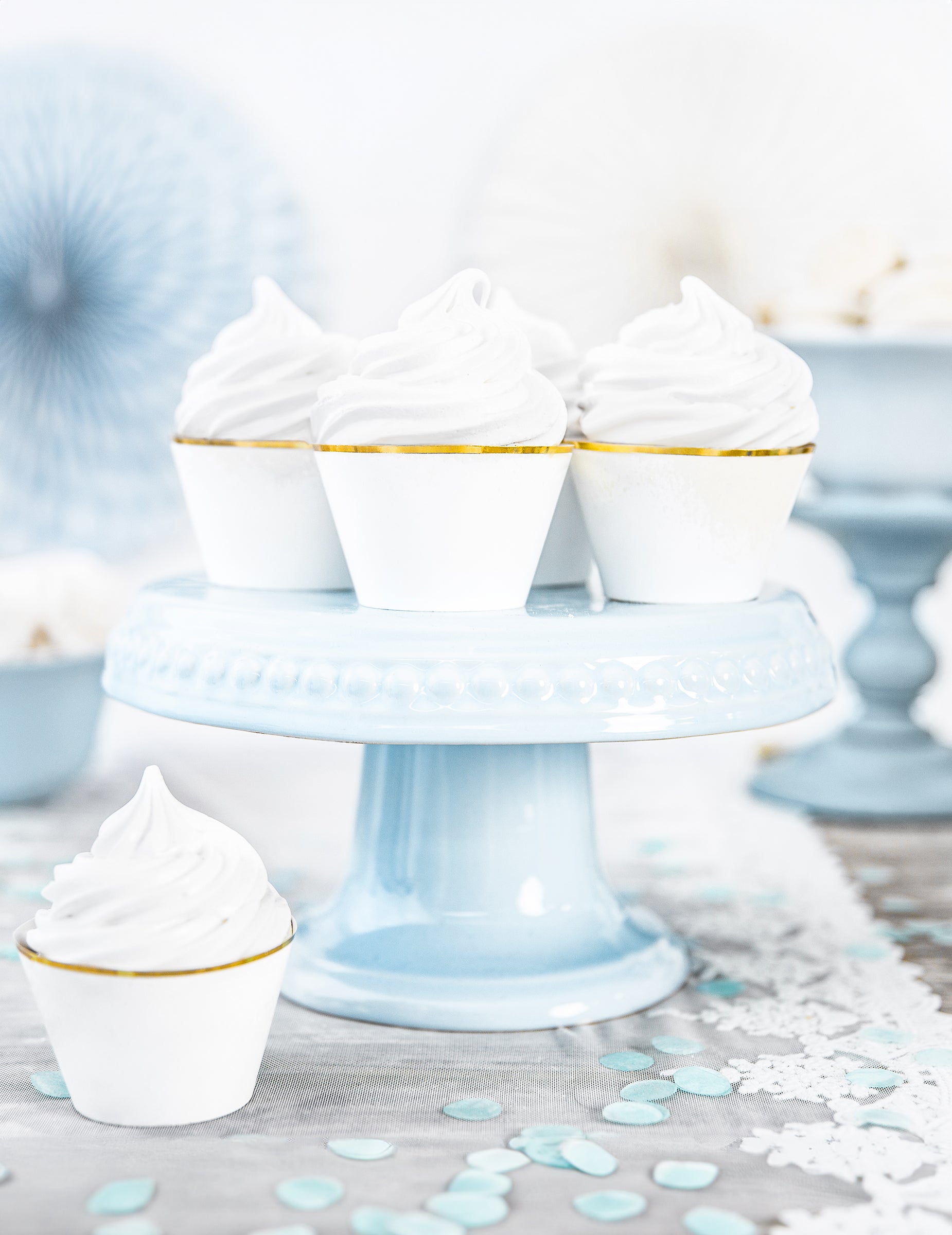 6 bílých a zlatých papírových obalů na košíčky pro svatby