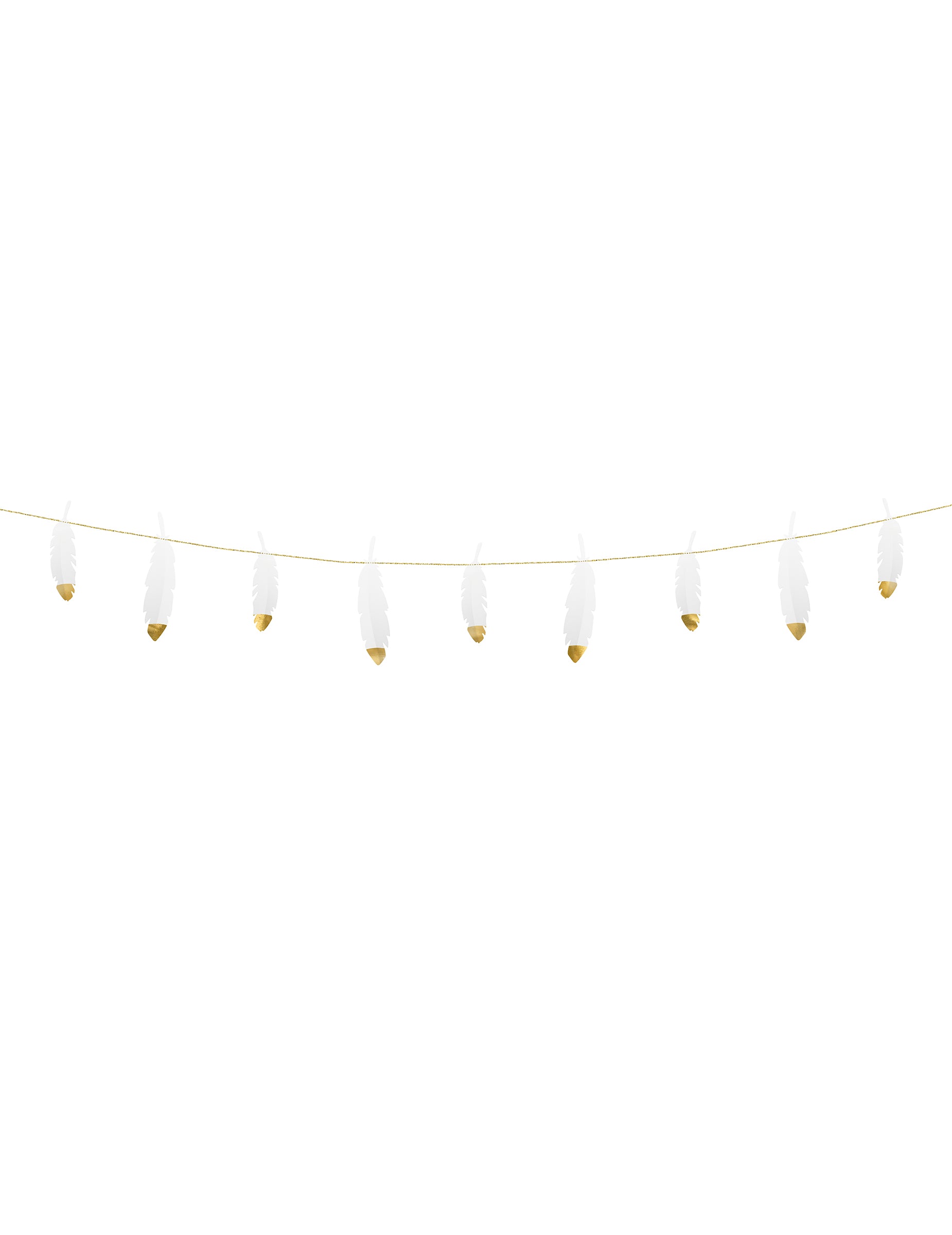S délkou 1,6 m, tento věnec sestává z peří bílá 13.5 cm přibližně vylepšené metalickým zlatým povrchem. Připojeno jemným odpovídajícím kabelem péřová girlanda přinese vám lehkost a eleganci dekorace, zejména pro a svatba nebo elegantní recepci.