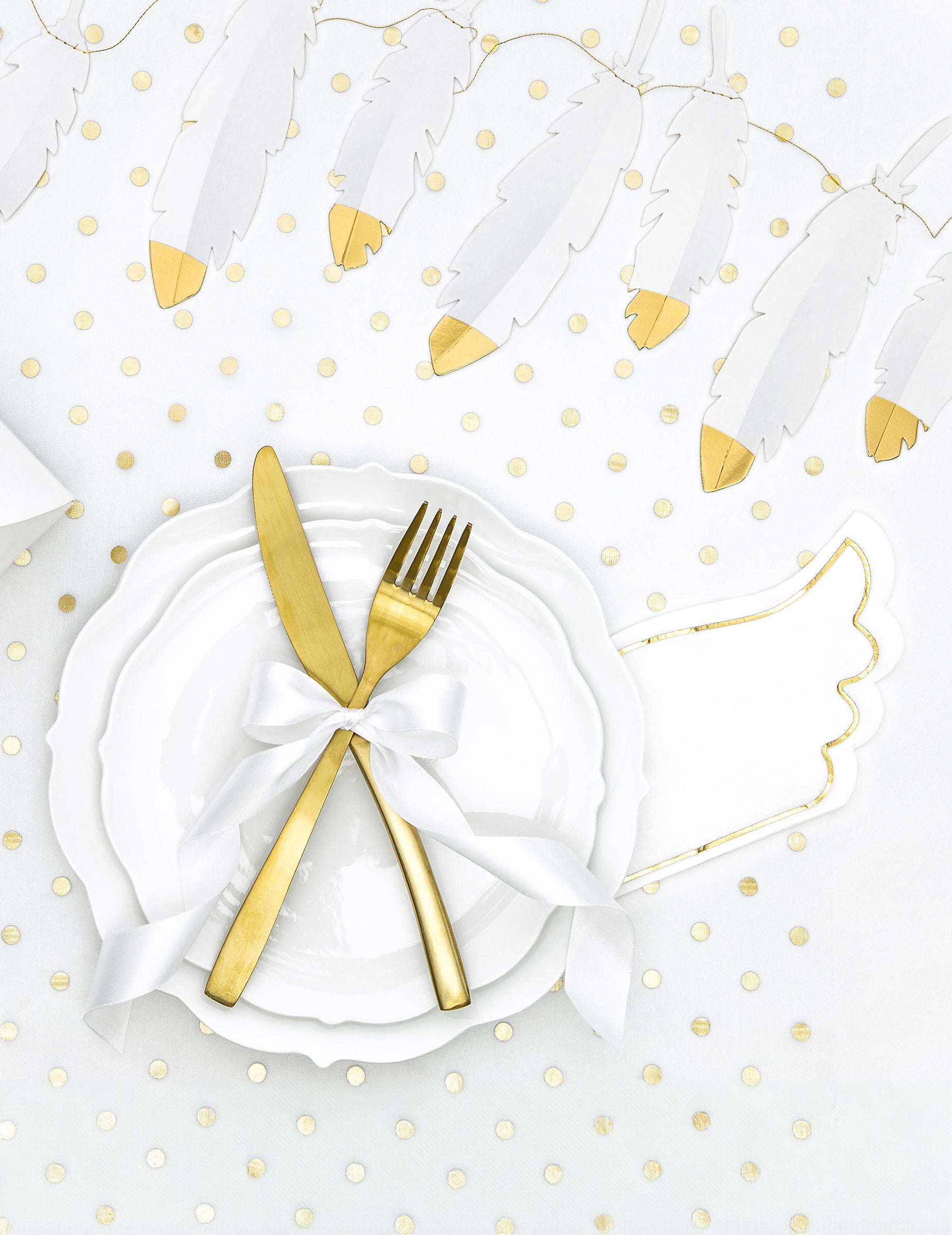Bílá a zlatá péřová girlanda 13.5 cm x 1,6 m svatební dekorace