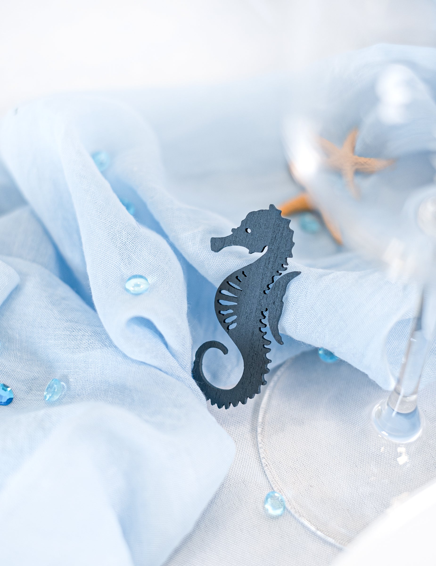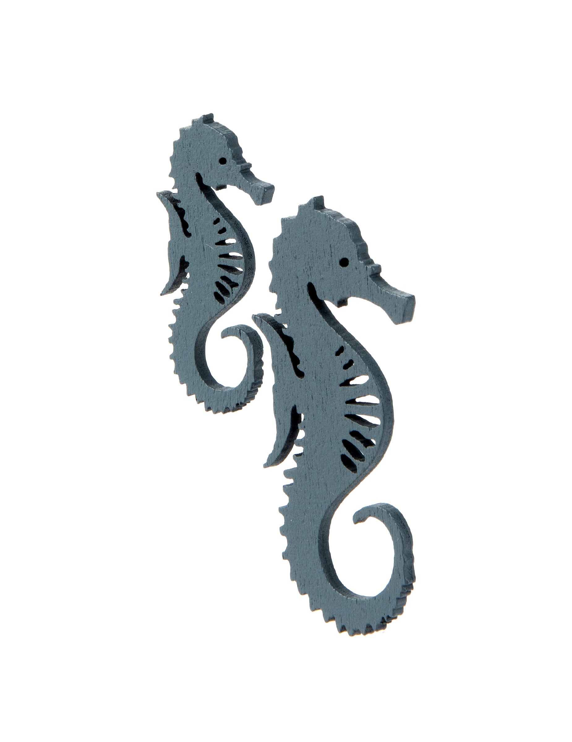 10 dřevěných konfet s modrými mořskými koníky, 6 a 4,5 cm