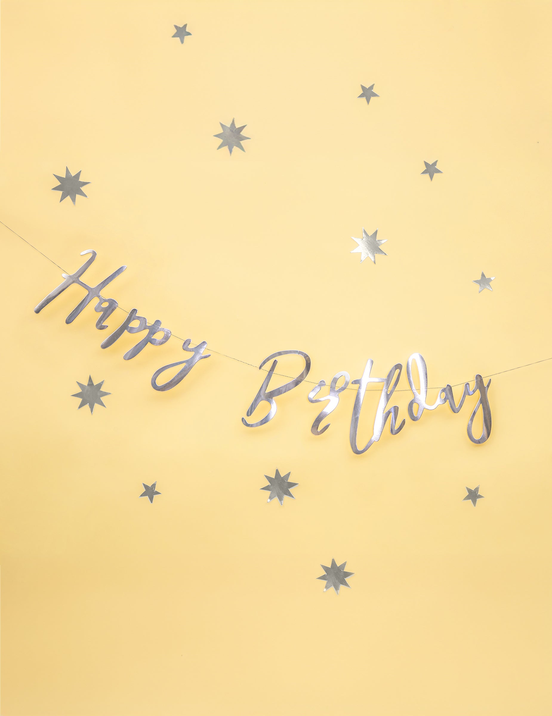 Všechno nejlepší k narozeninám metalická stříbrná kartonová girlanda 16,5 x 62 cm party dekorace