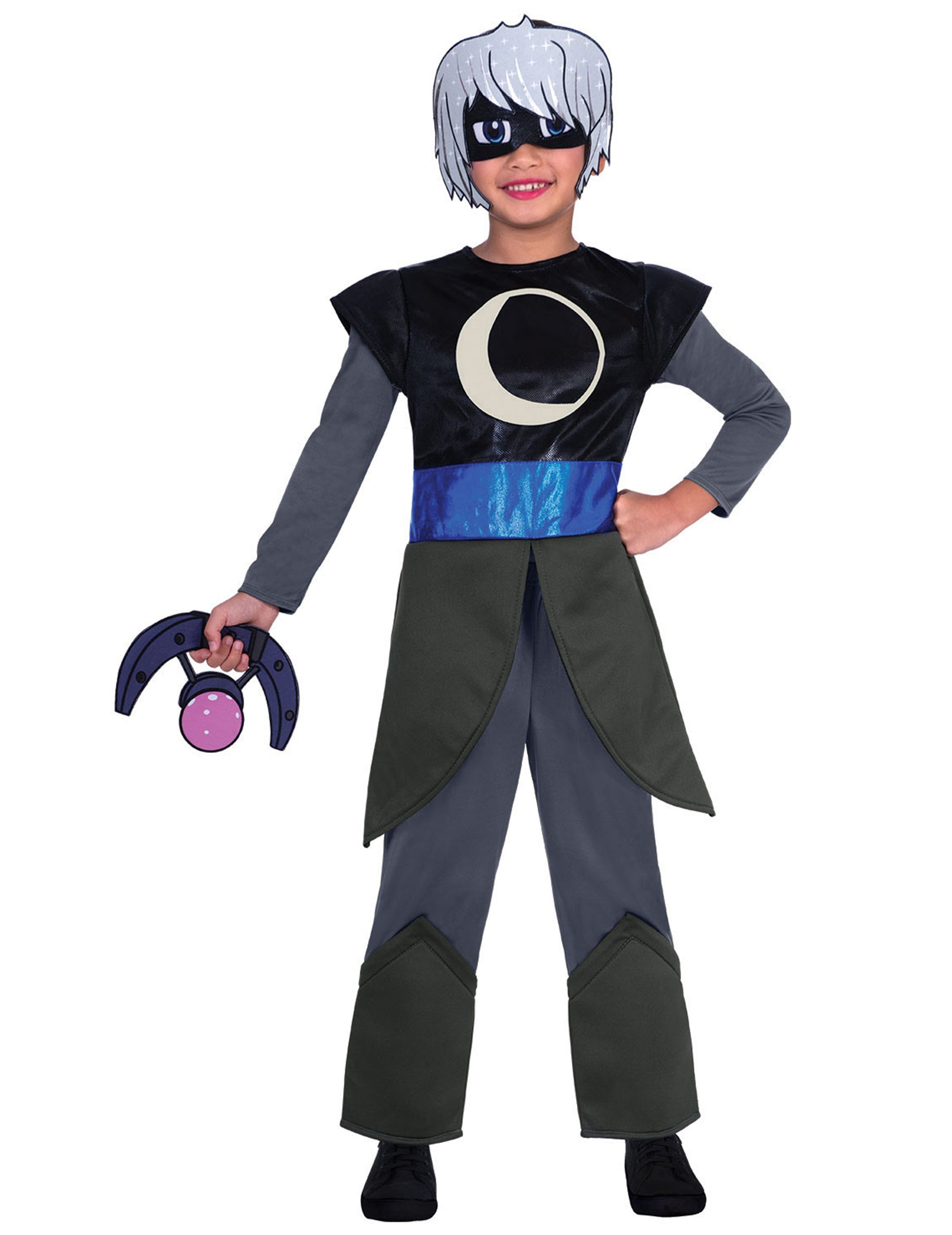 Tento dětský kostým Sorceline je v oficiální licenci Pyžamasky™. Obsahuje vršek, kalhoty, polomasku a zbraň.