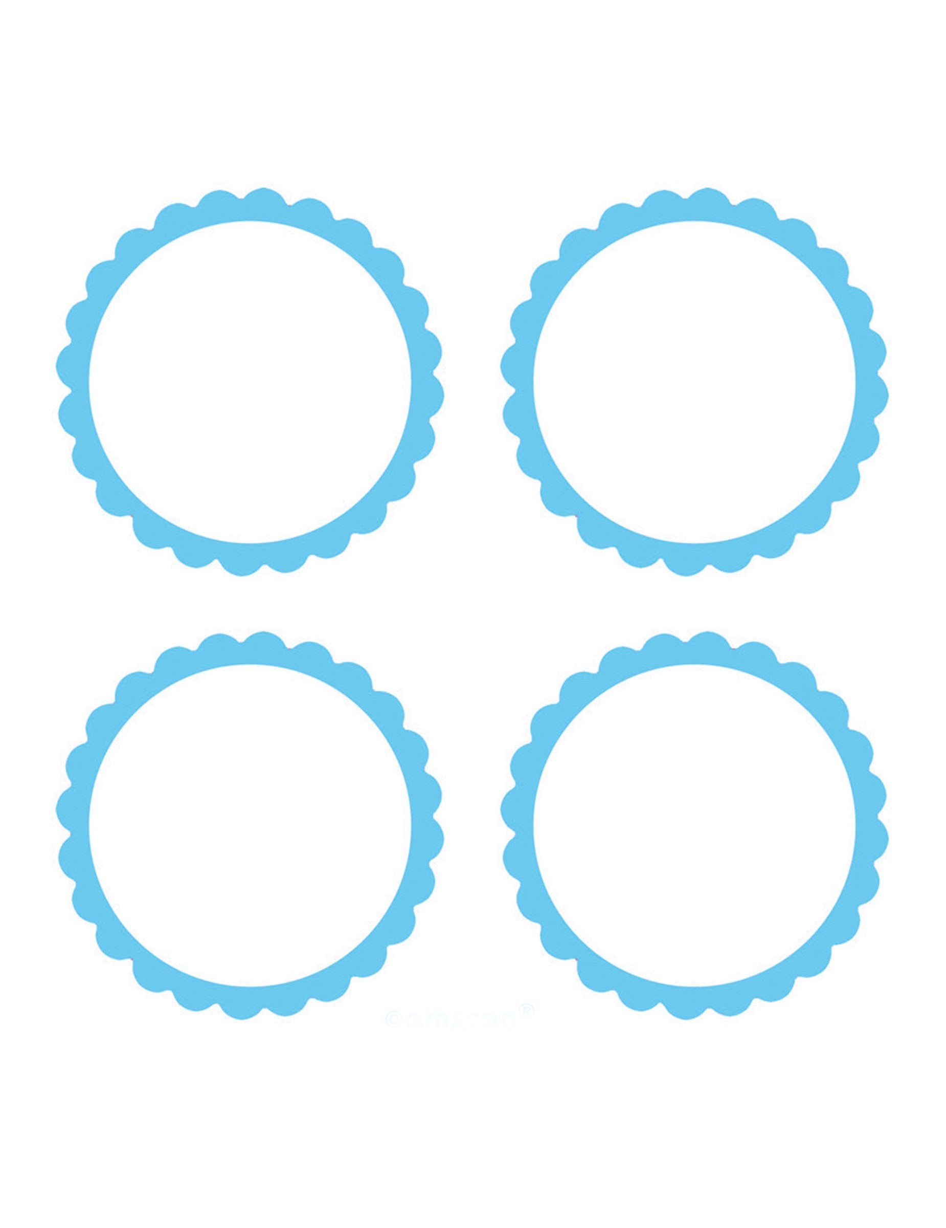 Tato šarže obsahuje 20 štítky dekorativní o průměru 5 cm cca. Každý kus má elegantní nebesky modrý vroubkovaný okraj. Tyto štítky jsou ideální pro osobní dotek kontejnery oslavy a dárkové tašky.