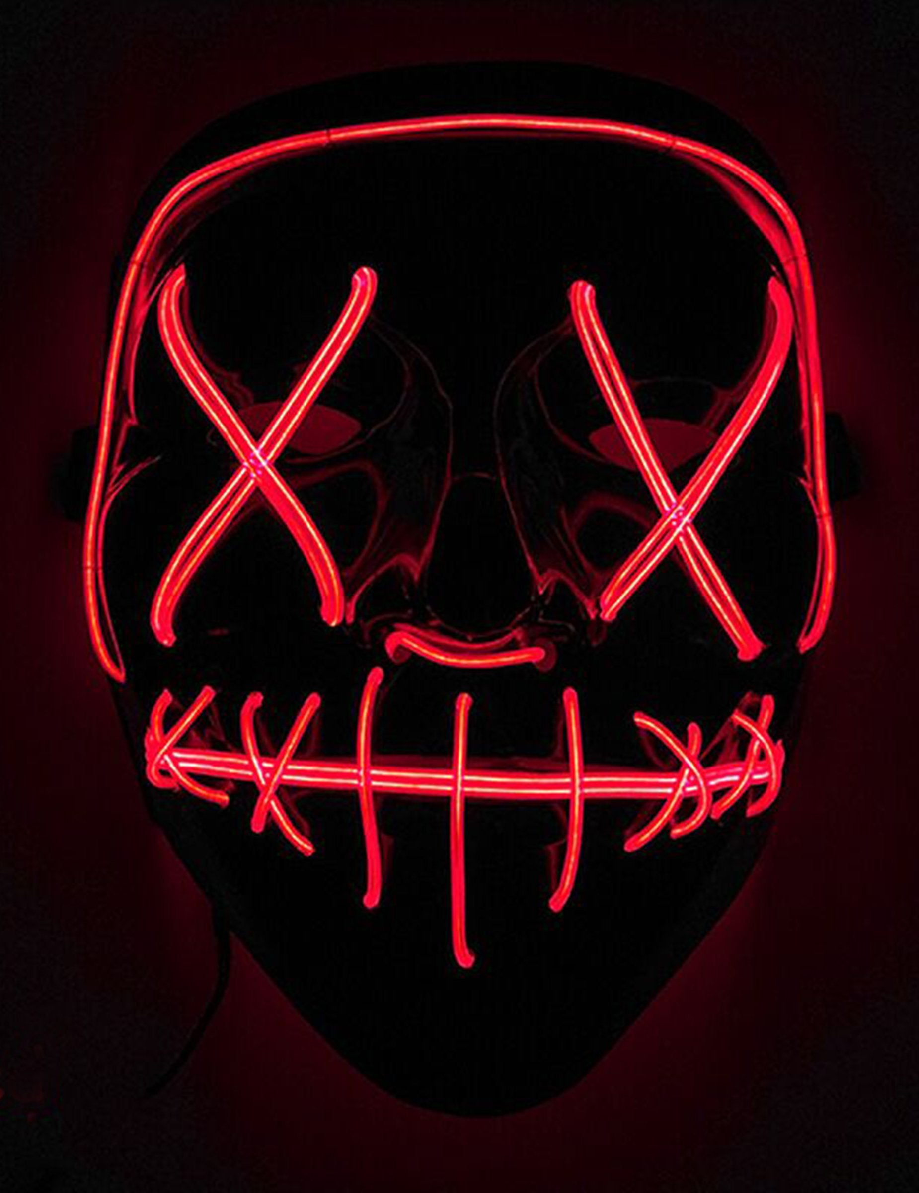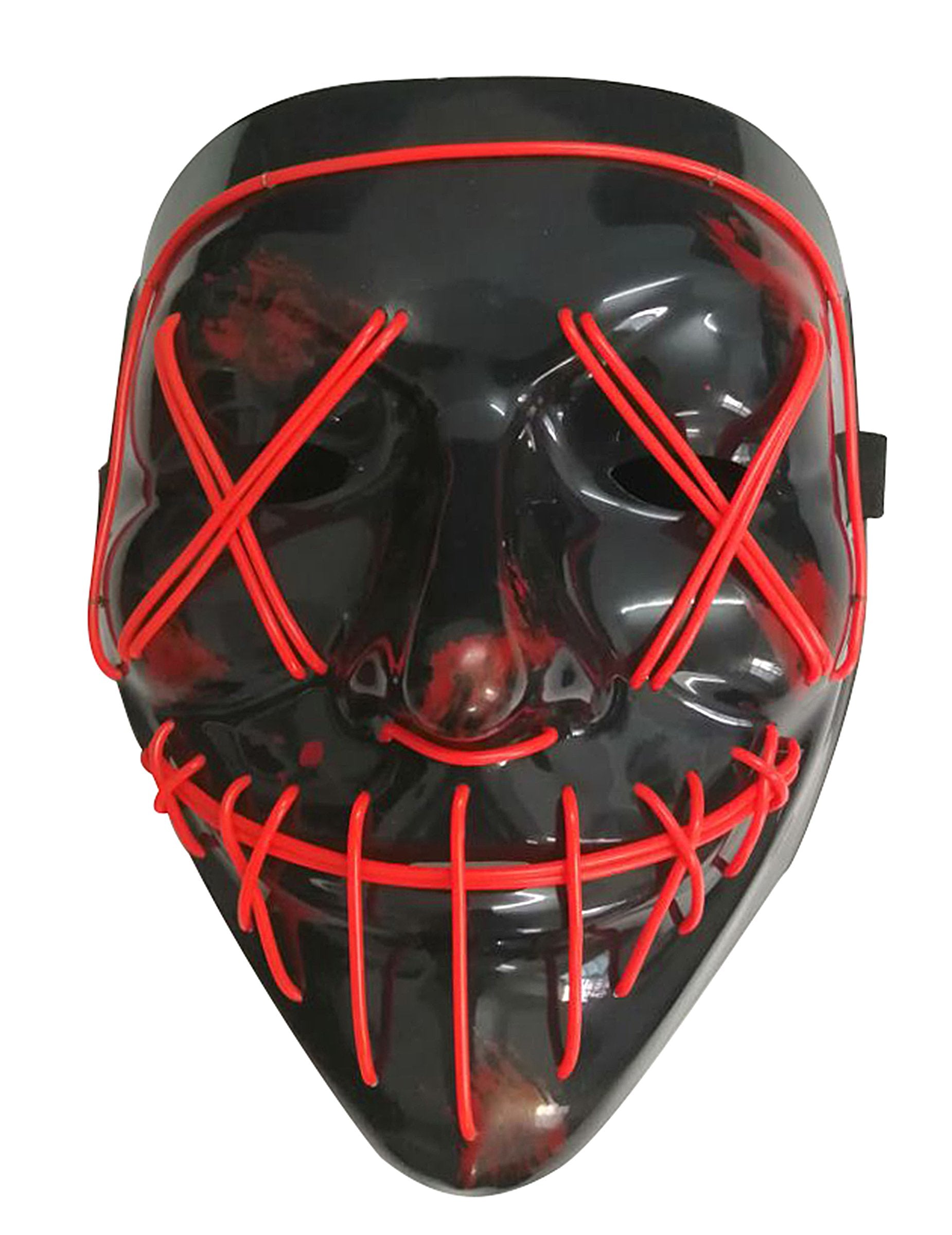 Tato maska pro dospělé s červenou LED diodou je vyrobena z černého plastu. Měří 20x18. cm. Když se na ni podíváte za bílého dne, je úplně černá se stopami krve všude... tato maska má vskutku děsivou historii! Na druhou stranu, když ji uprostřed noci zapnete, dva obrovské kříže a ústa zjizvená červenými LED dráty zmrazí kolemjdoucí strachy. Maska má 4 různé režimy svícení: stabilní (stálé světlo), pomalé blikání, rychlé blikání a vypnutí. To vám umožní měnit si potěšení! K napájení masky potřebujete 2 AA baterie (nejsou součástí balení) v krabici a to je vše! Jeden metr dlouhý kabel umožňuje uložit krabici například do kapsy kalhot! LED dráty vyzařují studené světlo, to znamená, že se dráty při používání masky nezahřívají! Takže žádné zdravotní problémy! Tato červená LED maska s kostýmem sériového vraha například stačí k tomu, abyste při zatáčení za roh zamrazili... Na Halloween se vydejte ven ve skupinách po 3 nebo 4 s maskou jiné barvy, dost na to, abyste vytvořili docela... děsivou skupinu!