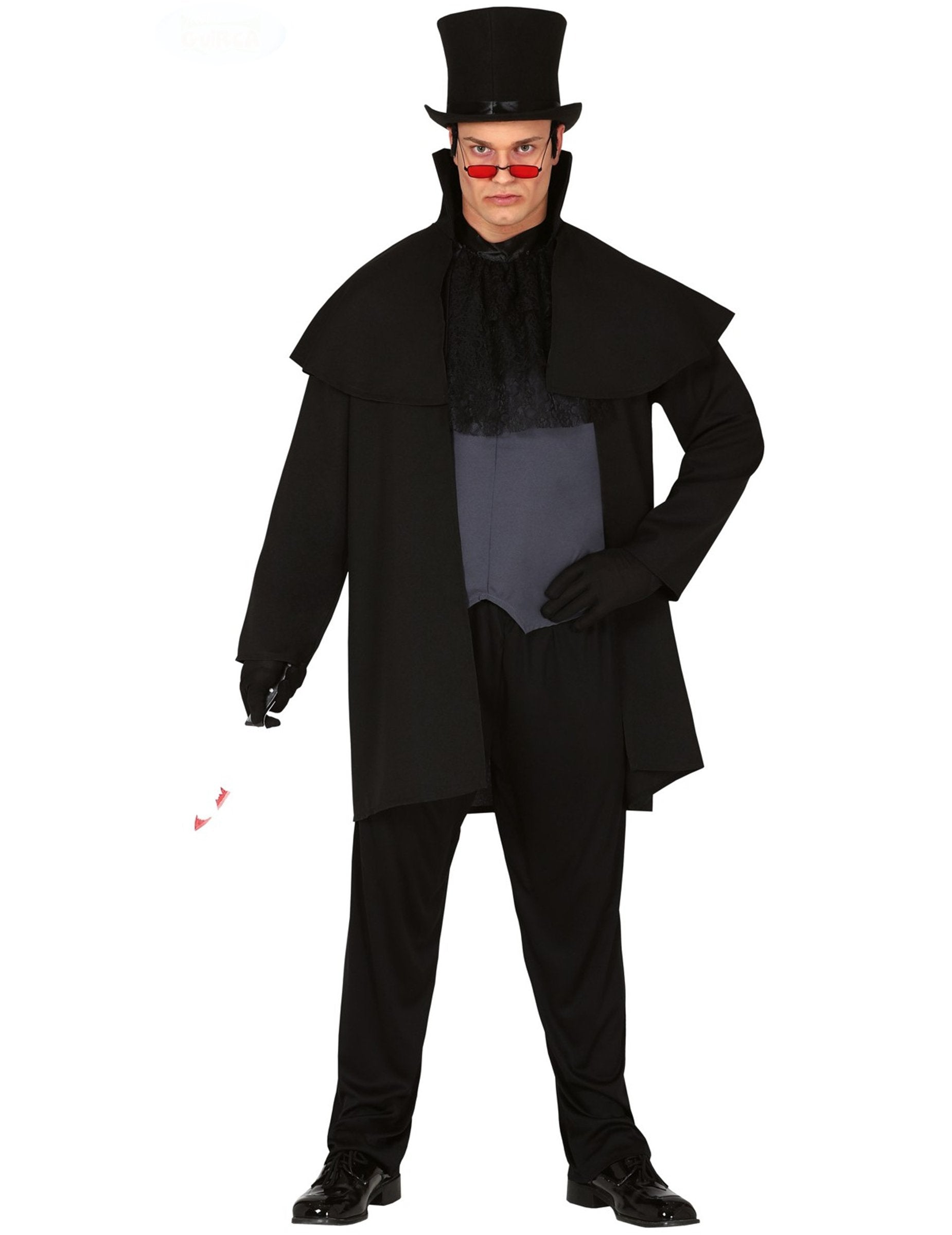 Tento kostým vraha z 19. století pro muže se skládá ze saka, kalhot a vesty s jabotem.