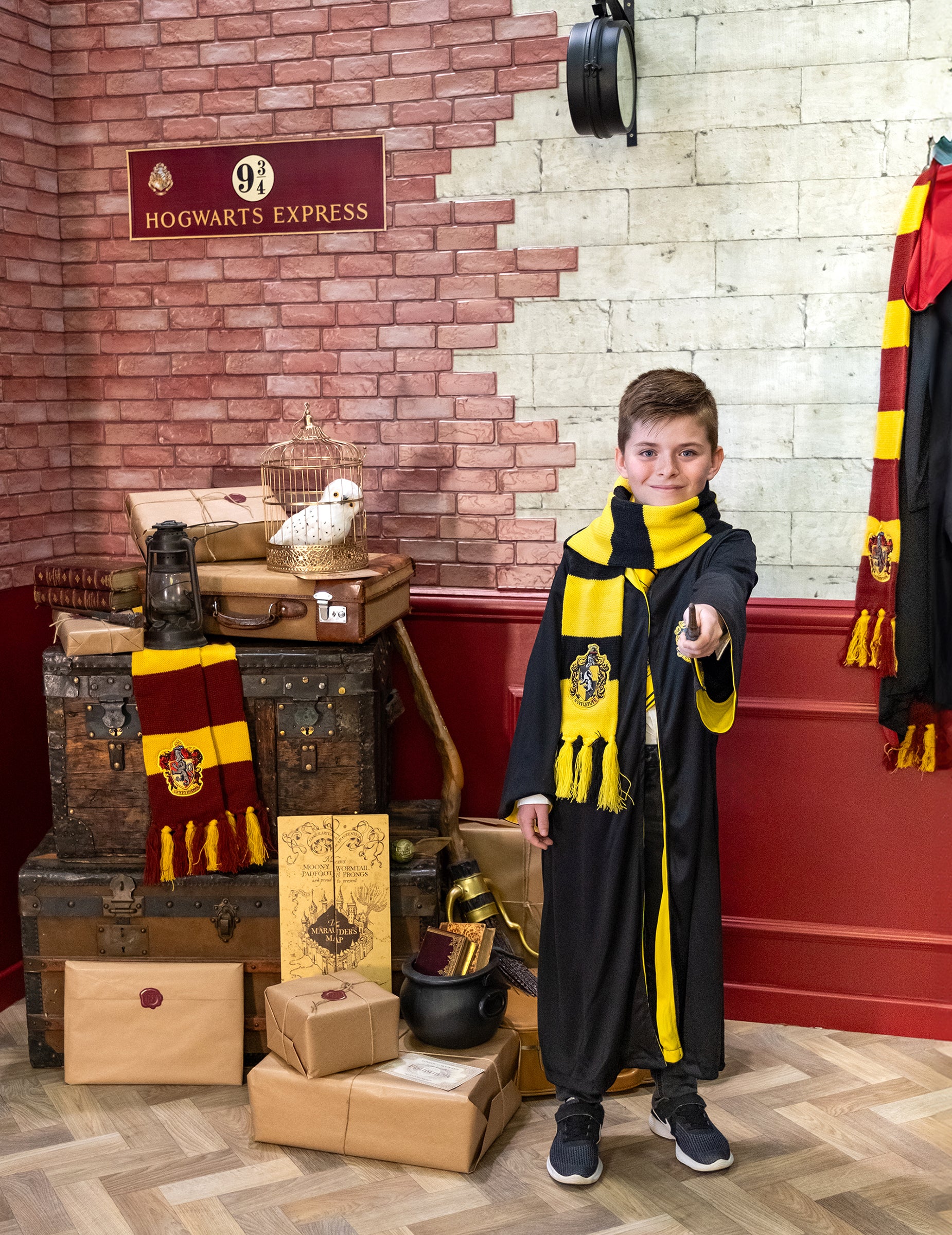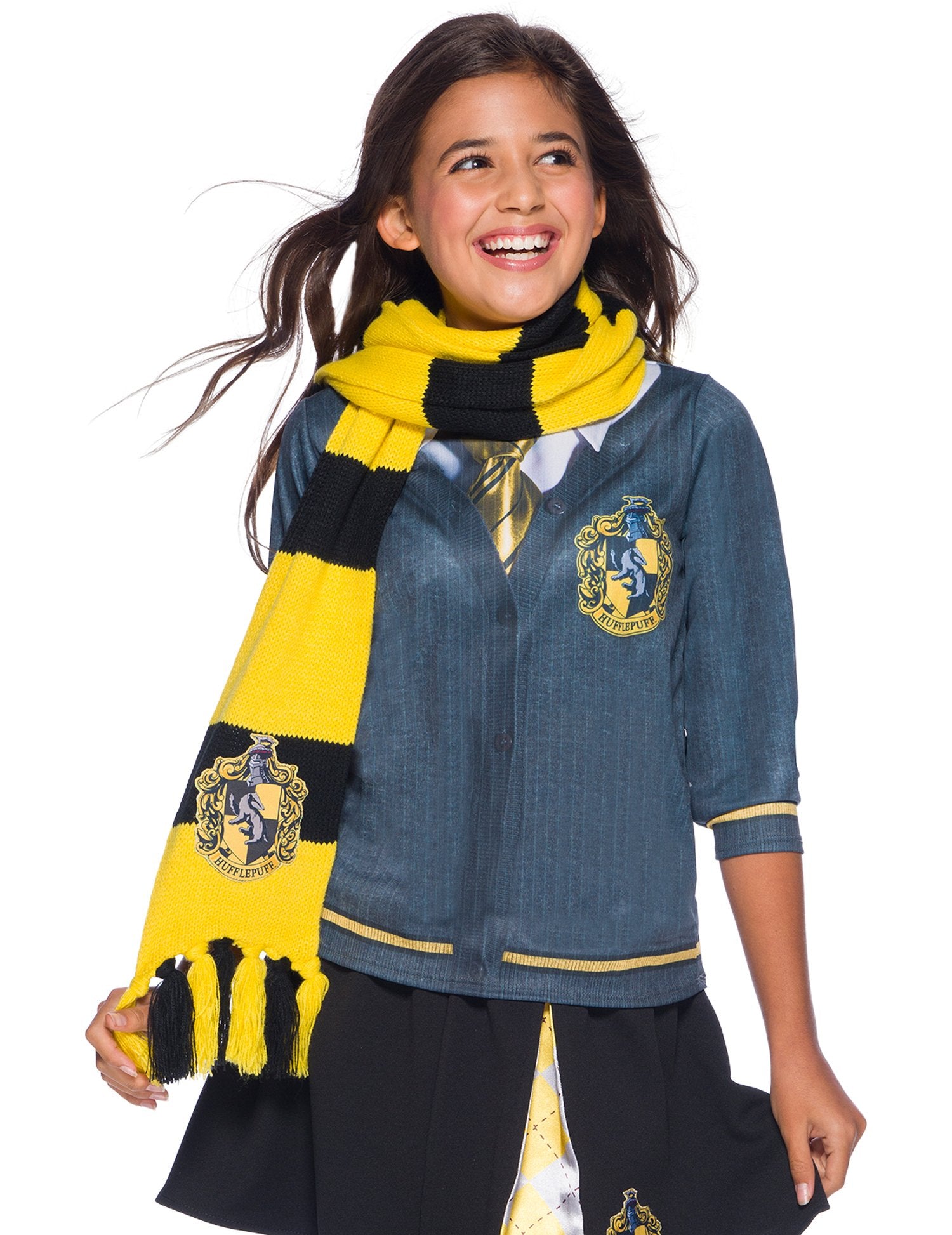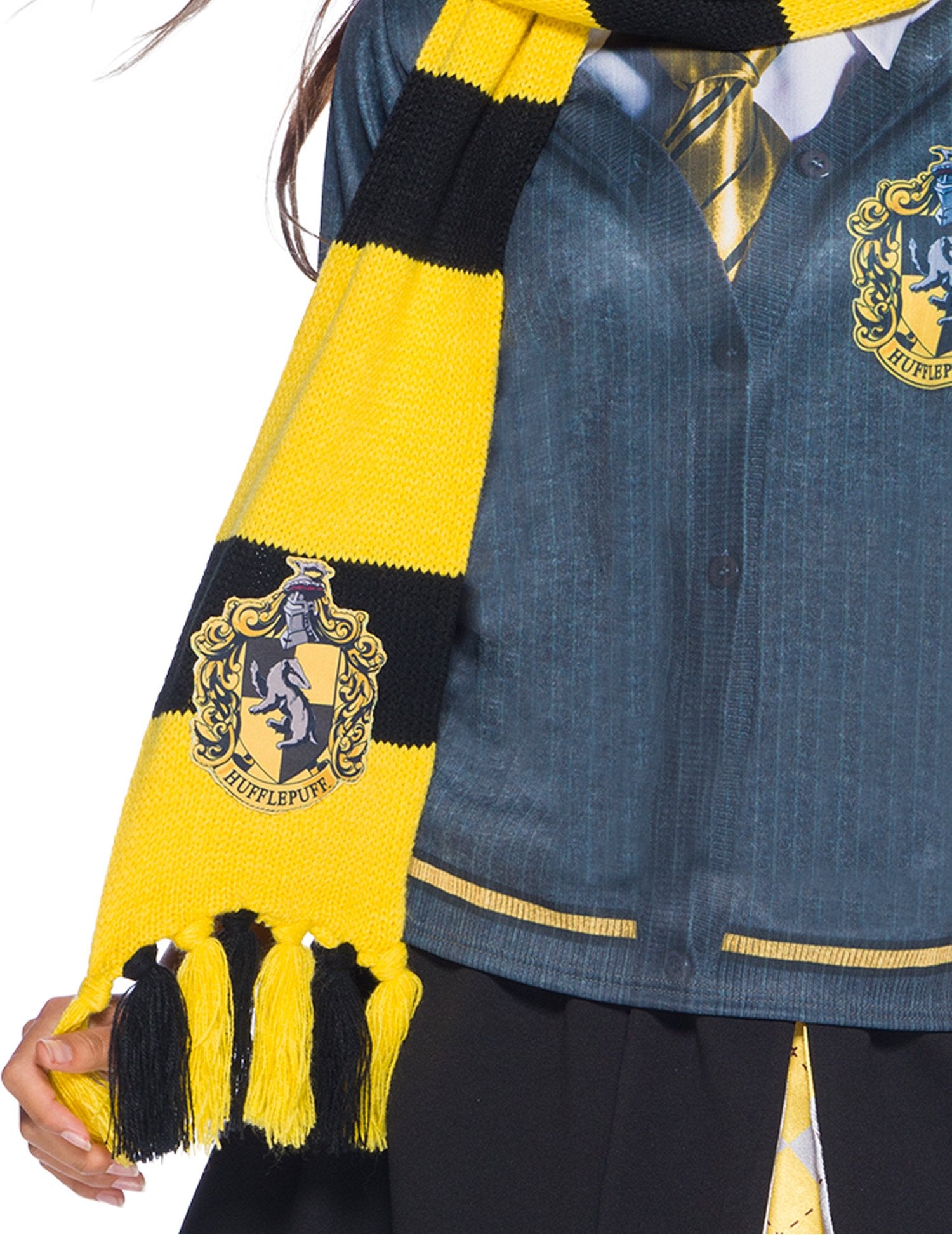 Tento šátek pro dospělé a dítě je pod oficiální licenci Harryho Pottera. Tento šátek navržený v barvách domu Pouffsouffle má pompomy na každé straně. Má délku asi 2 metry a má na něm šité erb domu. Ideální šátek pro integraci domu Pouffsoufle na zamaskovaný večer!