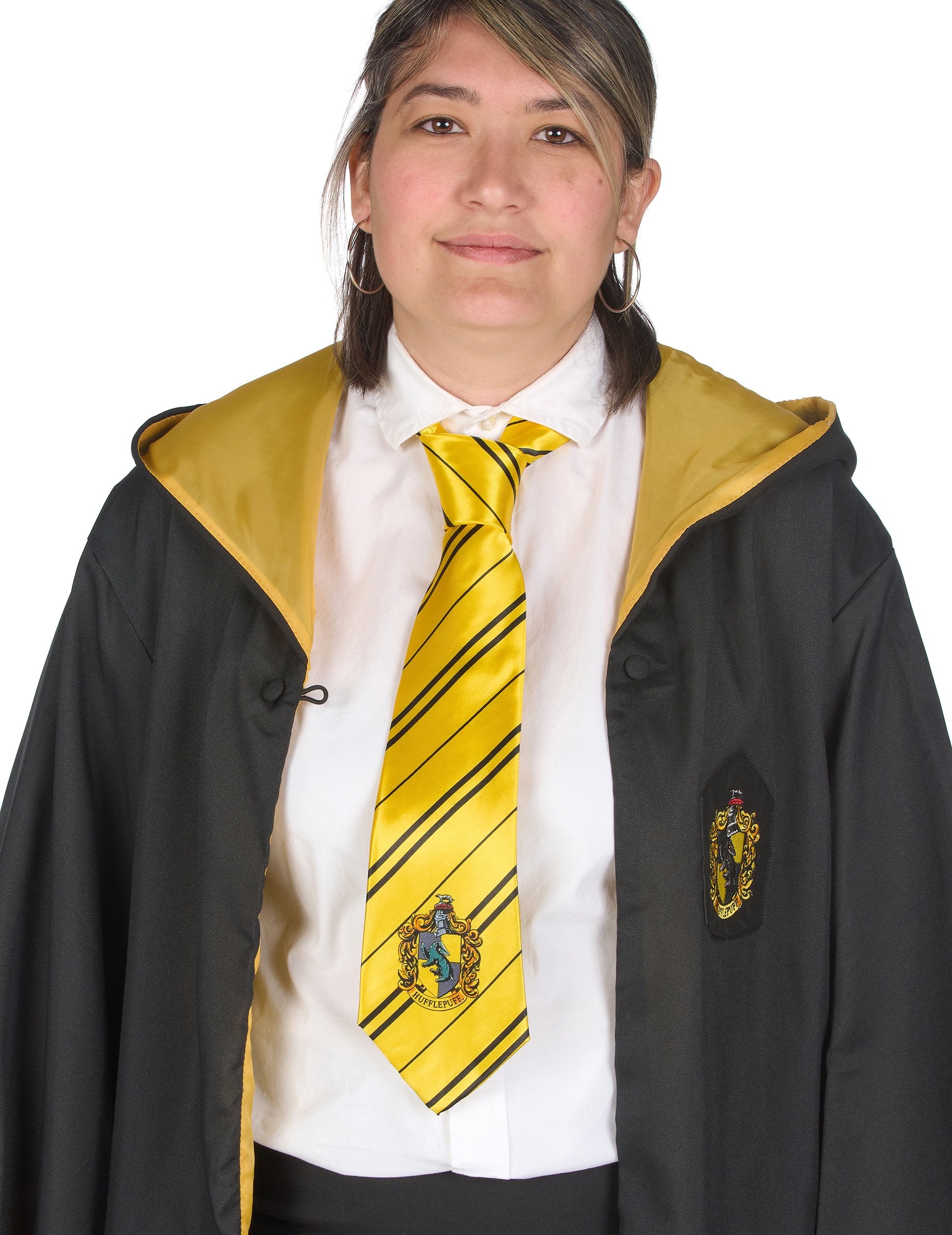 Oficiální licence této oficiální licence Harryho Pottera je na oficiální licenci. Je žlutá v saténové tkanině s černými šikmými liniemi. Odznak domu Poufsouffle je také vyšíván na dně kravaty. To bude ideální na večer na téma čarodějnic!