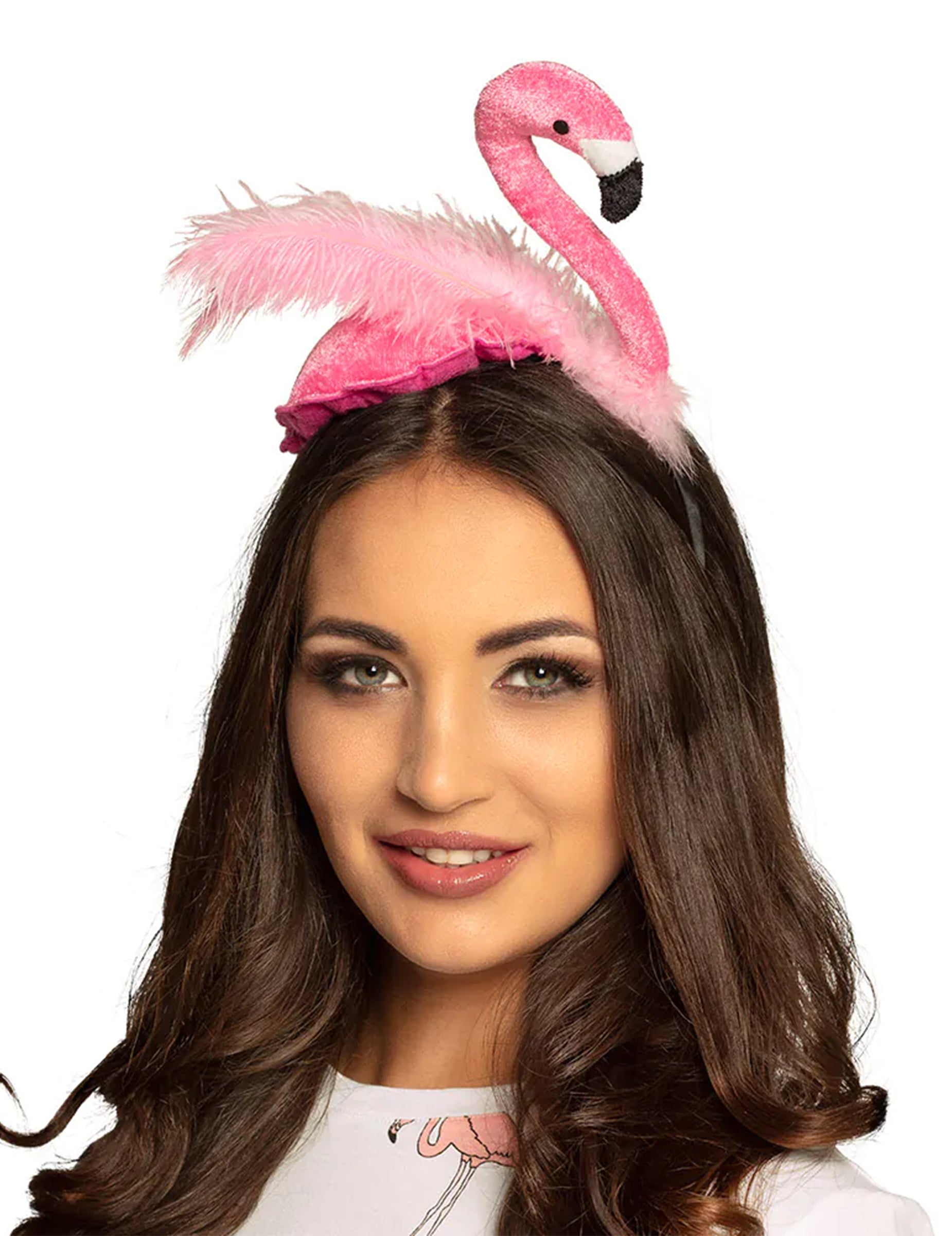 Tento růžový čelenník plameňáky je určen pro dospělé. Čelenka je vyrobena z černého plastu ZT, je zaseta tělem plameňáků, s docela světle růžovým pštrosím peřím. Tento čelenník bude ideální na večer na téma zvířat nebo na tropický večer!