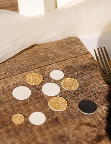 Stolní konfety ze slonoviny a zlaté třpytky pro elegantní dekoraci