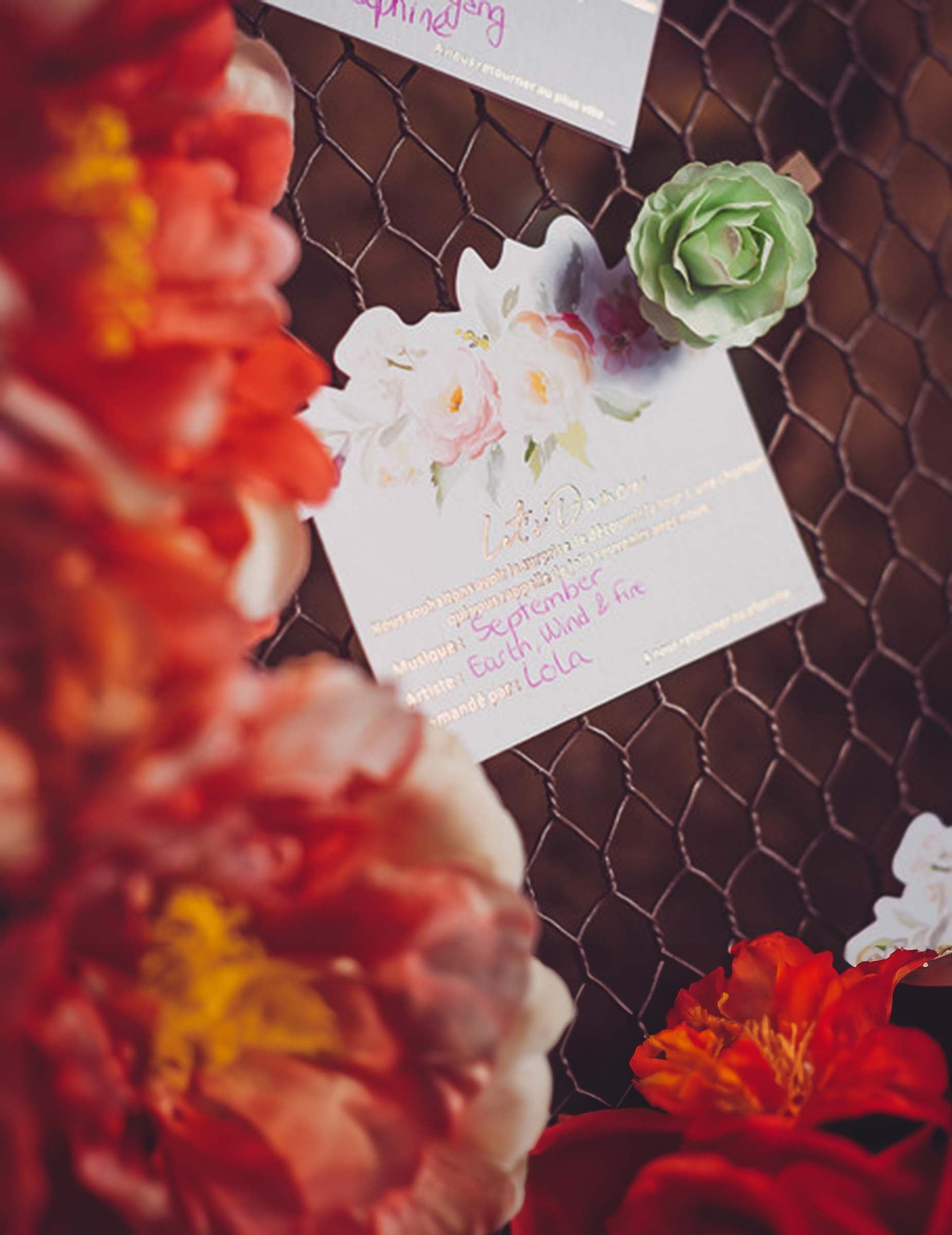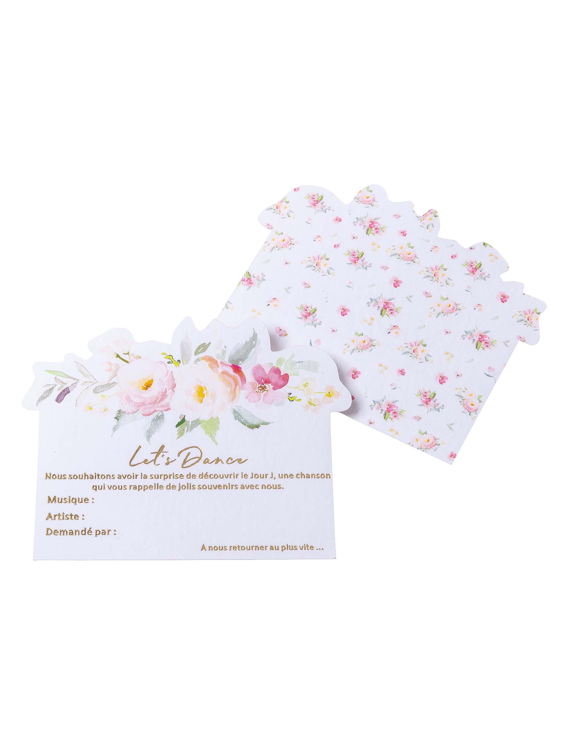 Tyto podpěry umožňují vašim hostům zaznamenat název hudby evokující okamžik sdílený s manželi. Doporučujeme, abyste je připojili ke svatebním pozvánkám a vytvořili si tak personalizovaný seznam skladeb na večer.