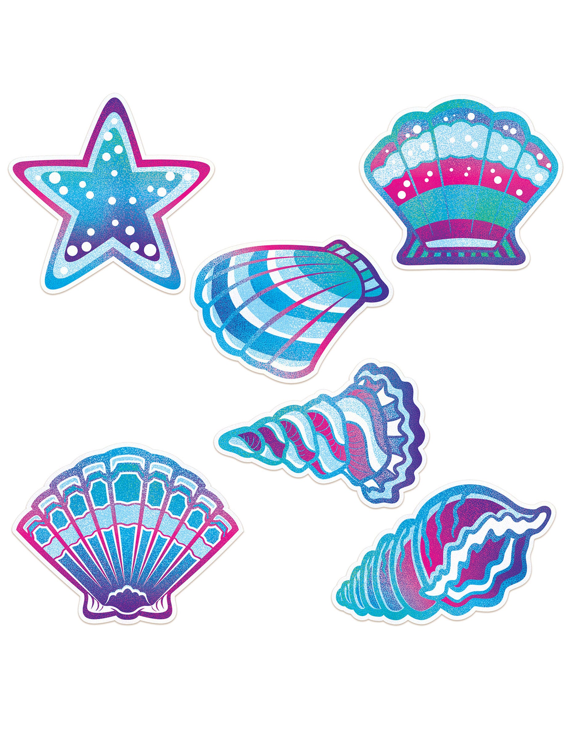 6 kartonových dekorací svět mořských panen 30 cm, mušle a hvězdy