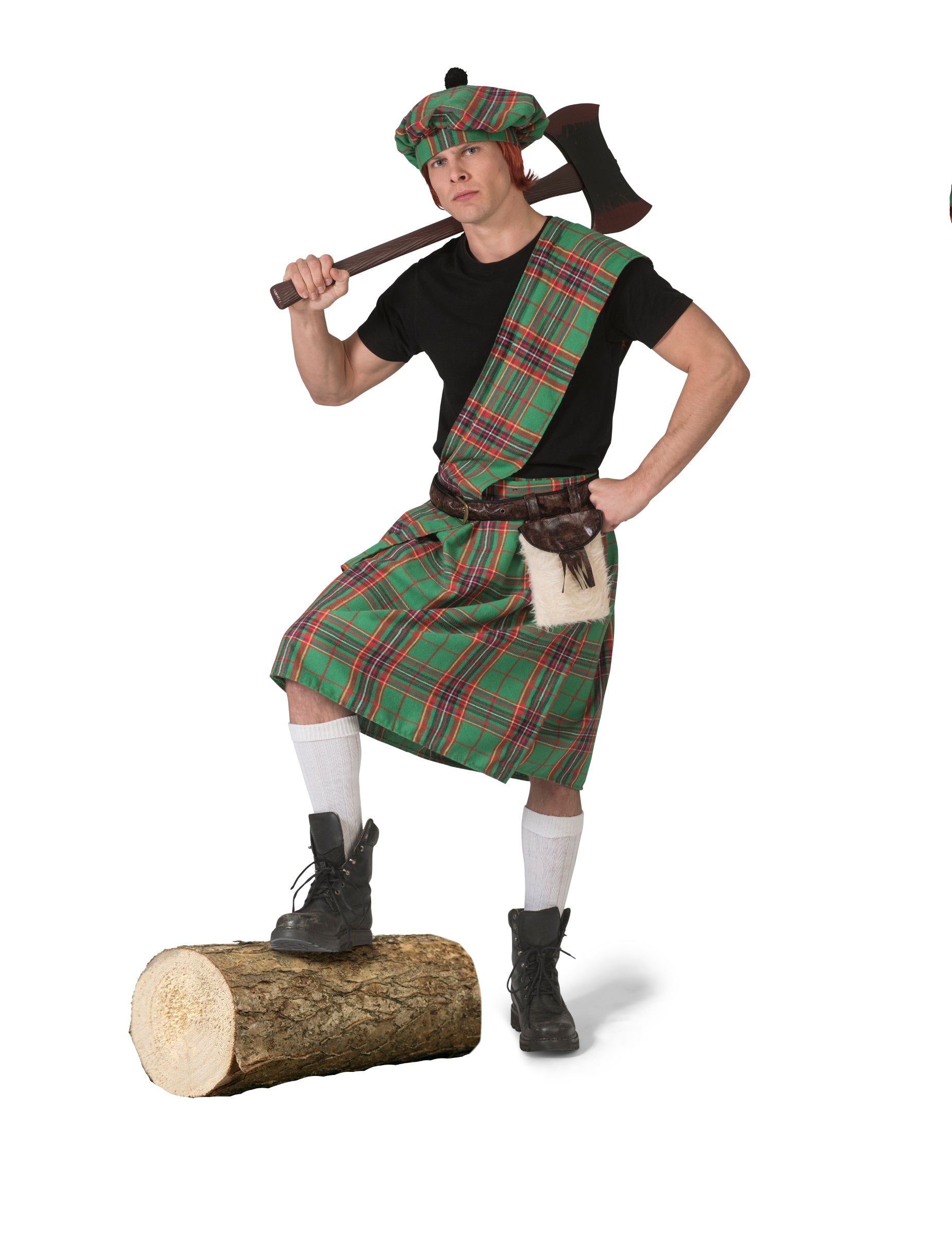 Tento skotský zelený kostým pro muže obsahuje kilt, šálu a opasek s brašnou (baret, košile a sekera nejsou součástí balení).