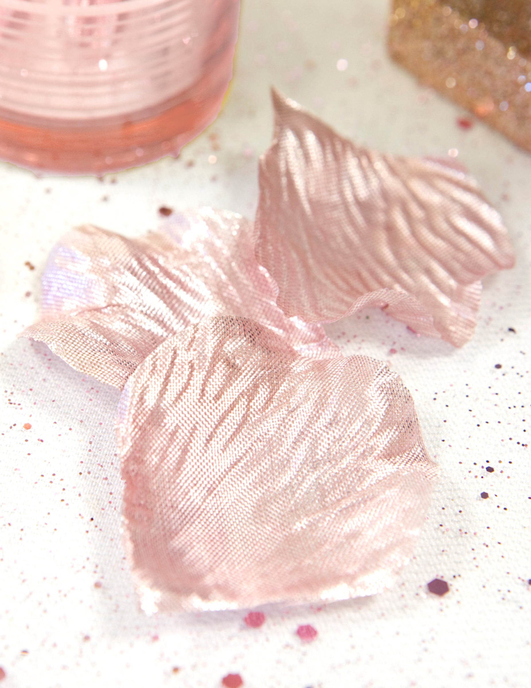 50 okvětních plátků růží v metalické látce z růžového zlata 5,5 x 3,5 cm