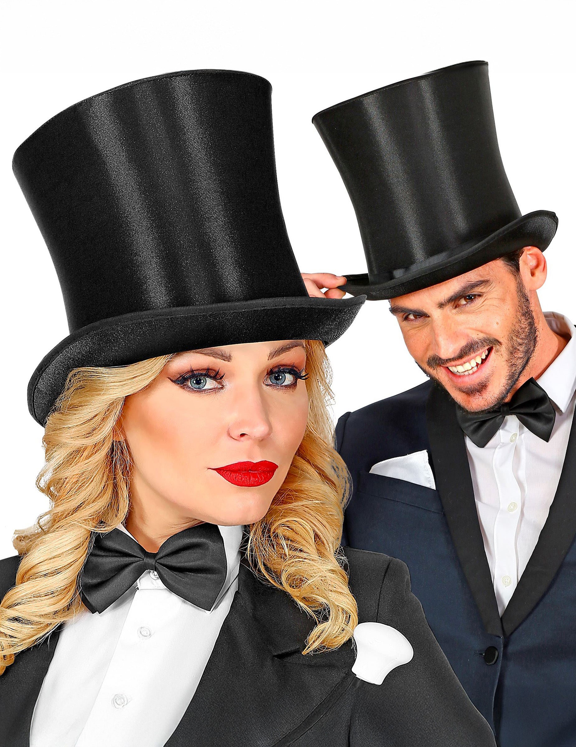 Tento klobouk je černý cylindr. Má pěkný saténový vzhled a na spodní straně má tenký pásek. Kšilt klobouku je po stranách mírně zvednutý. Měří přibližně 19... cm vysoká, 30 cm šířka a 57,5 cm obvod hlavy. Tento cylindr se perfektně hodí k okamžitému dodání elegantního nádechu kouzelníkovi, cirkusovému kostýmu nebo buržoaznímu kostýmu z 20. let 20. století.