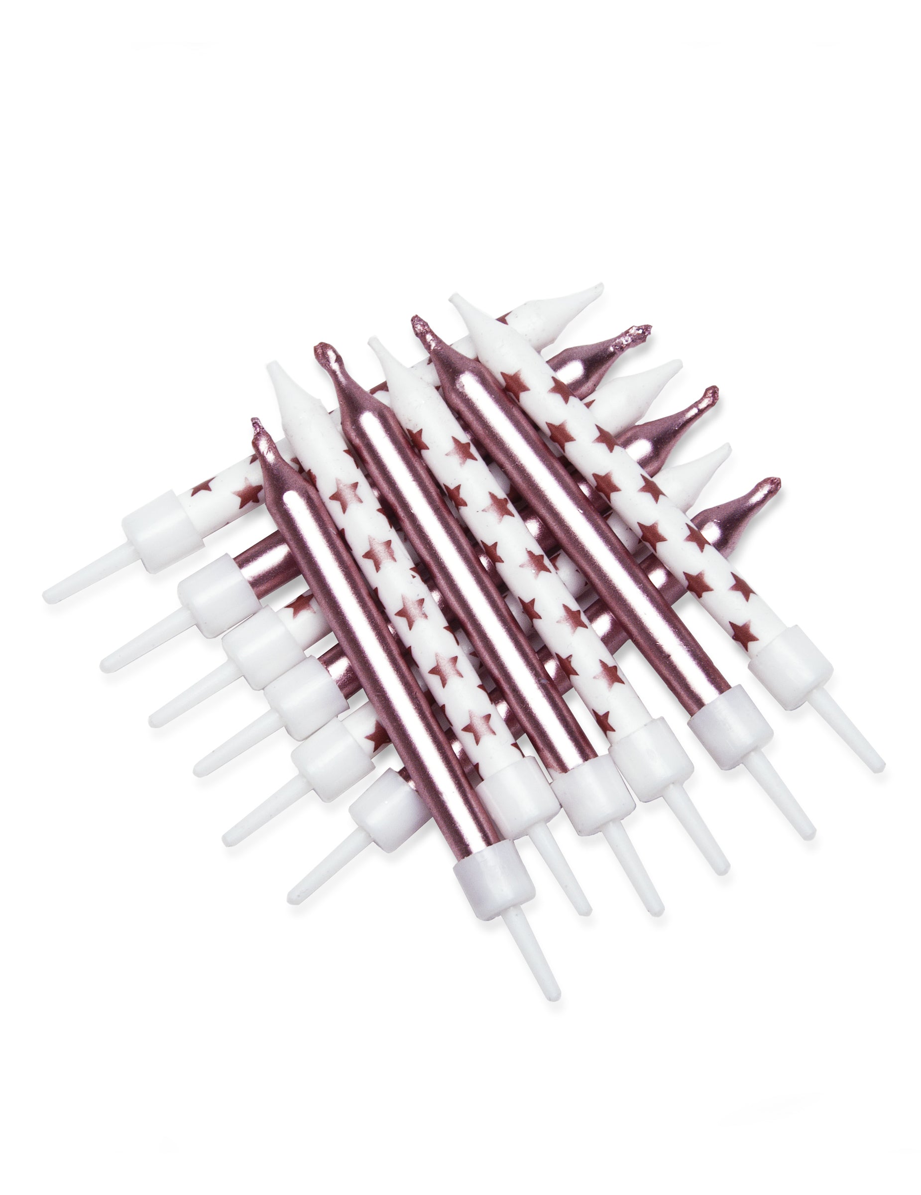 Přineste dotek elegance s touto sadou 12 kusů svíčky ze dne 7.5 cm. Balení obsahuje svíčky obyčejné růžové zlato i bílé modely poseté lesklými hvězdami. Je ideálním doplňkem pro zpestření vašeho dortu.narozeniny věnované téma růžové zlato !