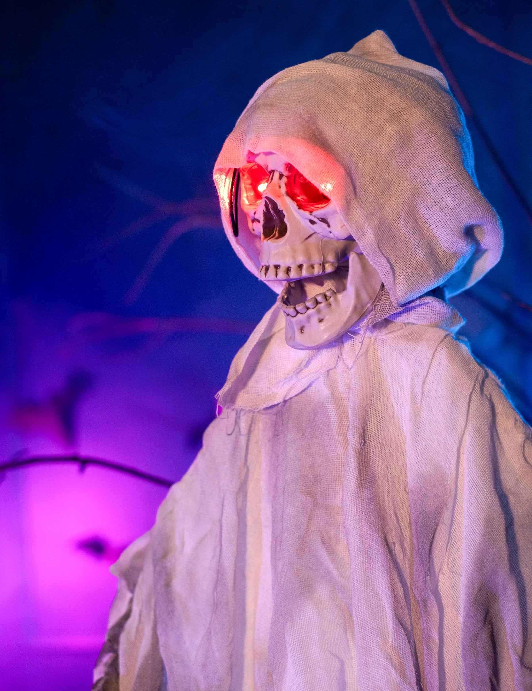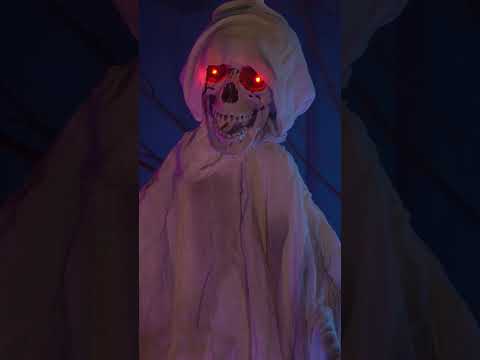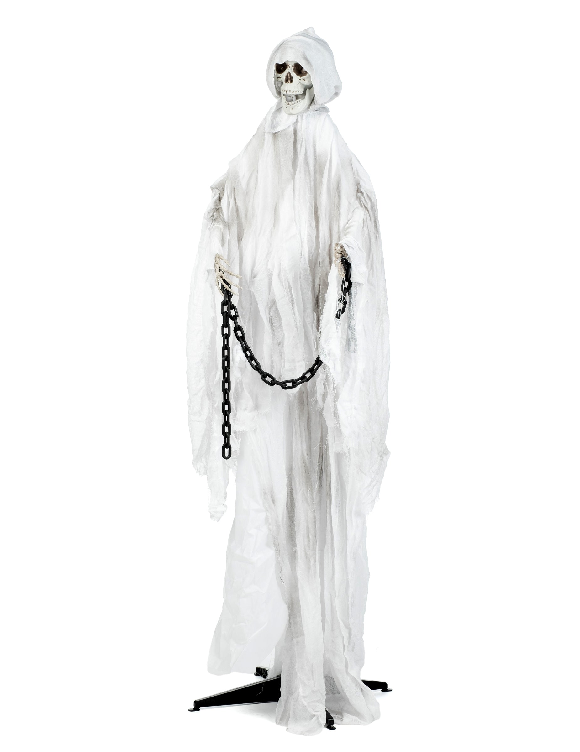 Toto spoutaný duch dekorace na noze měří asi 190 cm. Kostra je pokryta opotřebovaným pláštěm a kapucí.