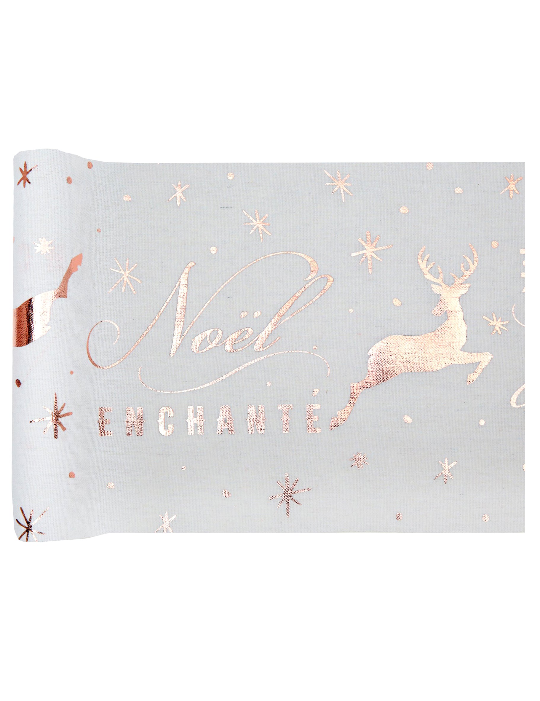 Začarovaný vánoční běhoun na stůl z růžového zlata 3 m x 28 cm jelení vzory