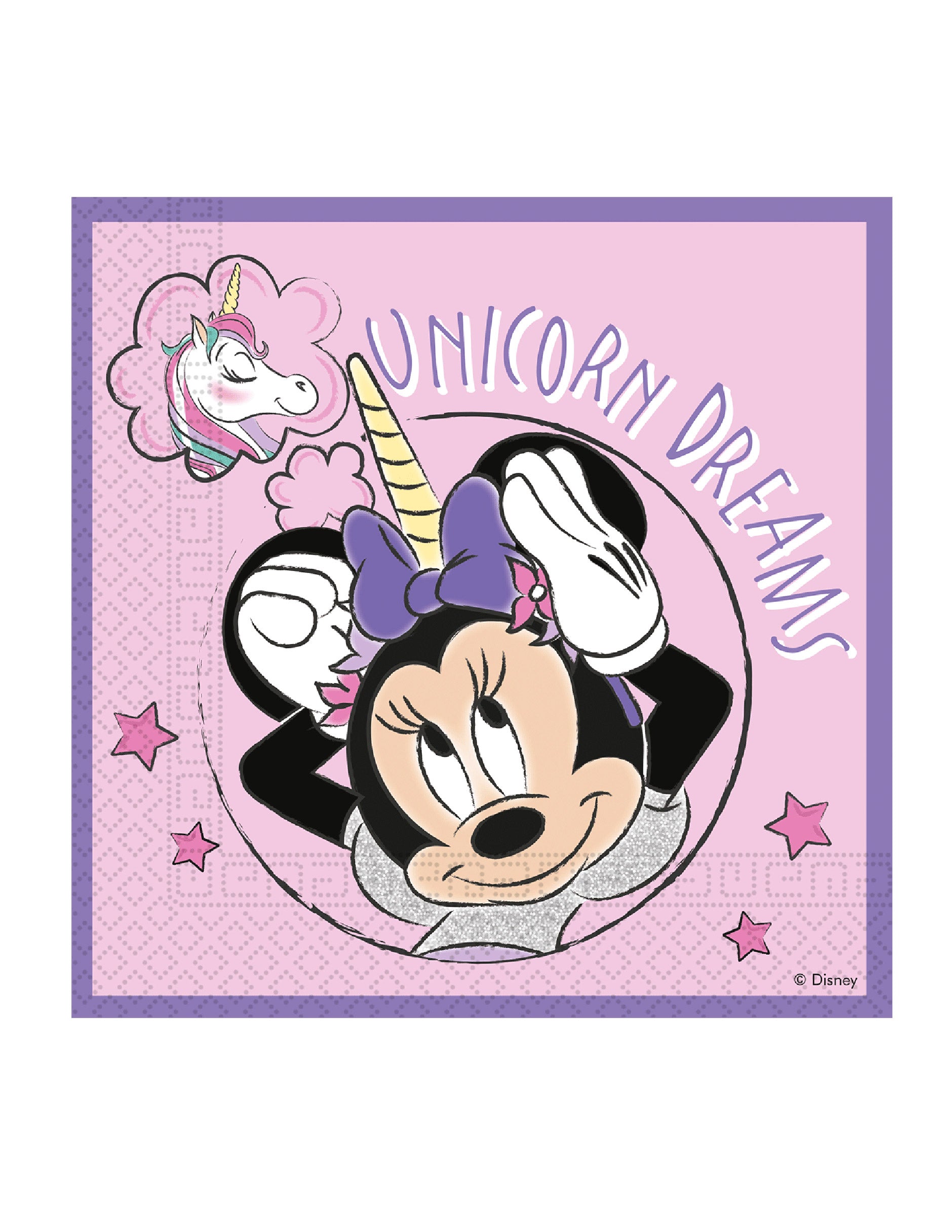 Těchto 20 kompostovatelných papírových ubrousků je v oficiální licenci Minnie a jednorožec™.