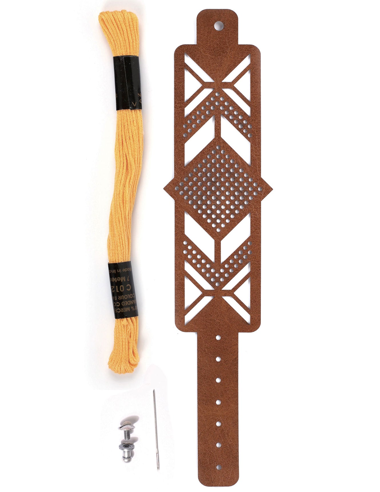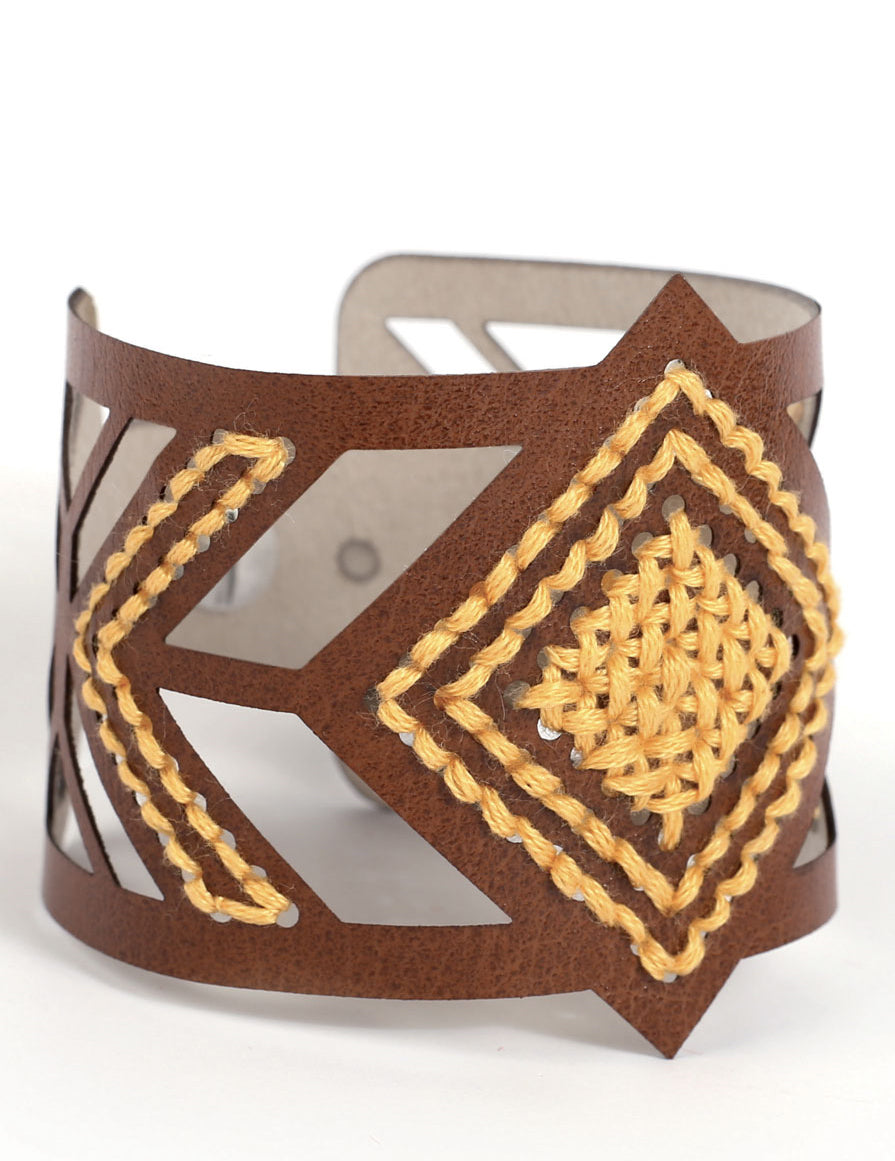 Sada hnědých kožených vyšívacích náramků s diamantovým vzorem pro dospělé