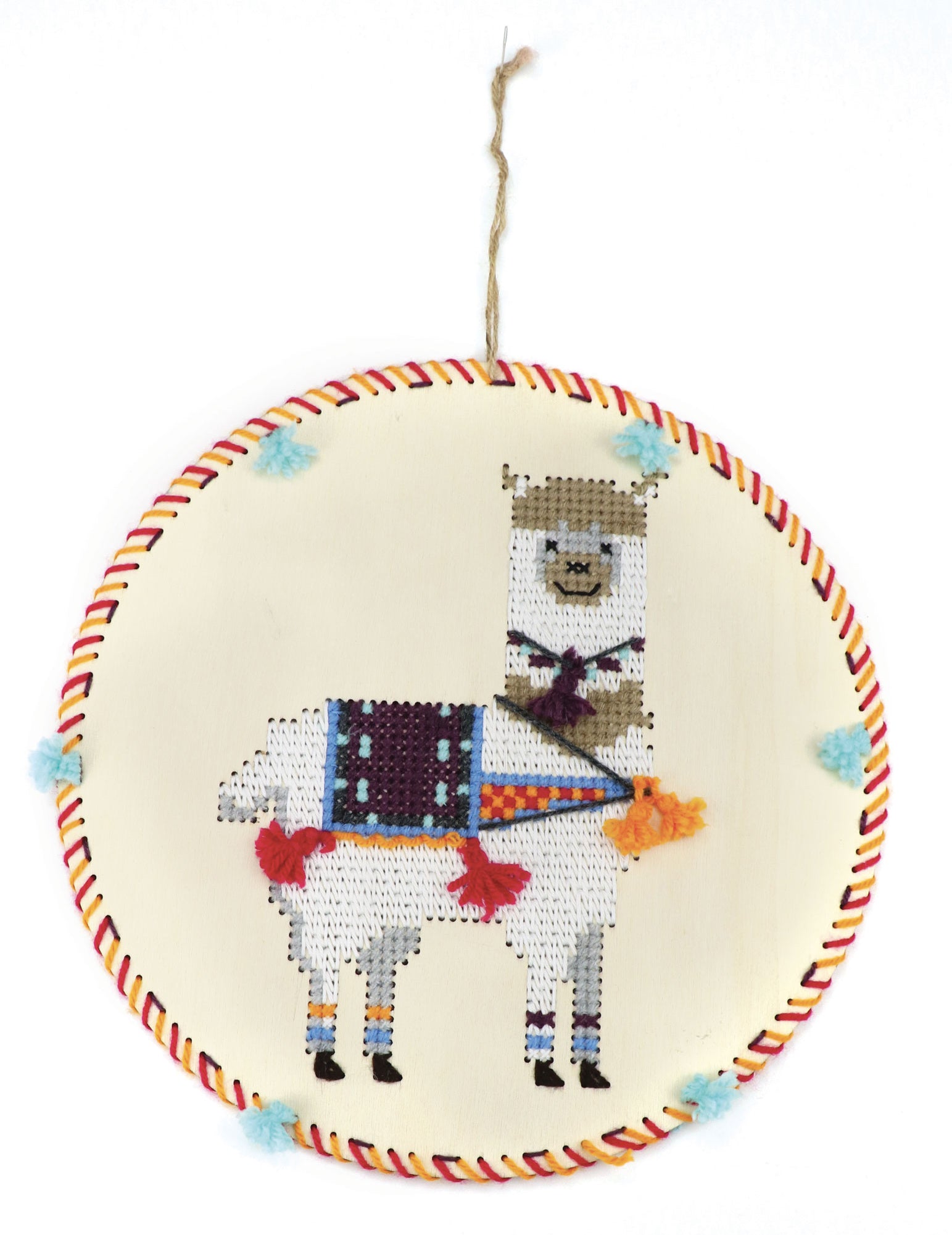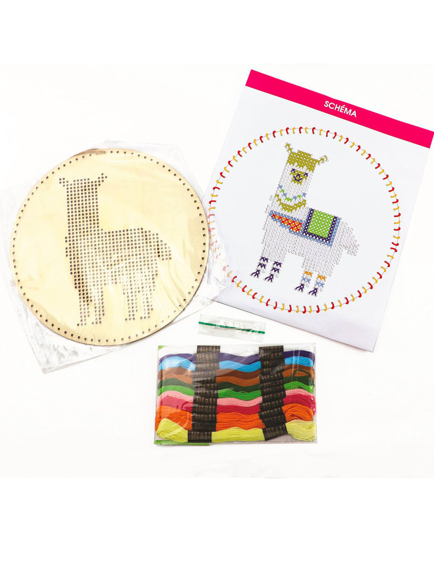 Vyšívací závěsná sada Llama 22 cm dřevěné