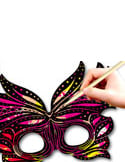 3 ploché kartonové škrabací masky pro kreativní festival volného času