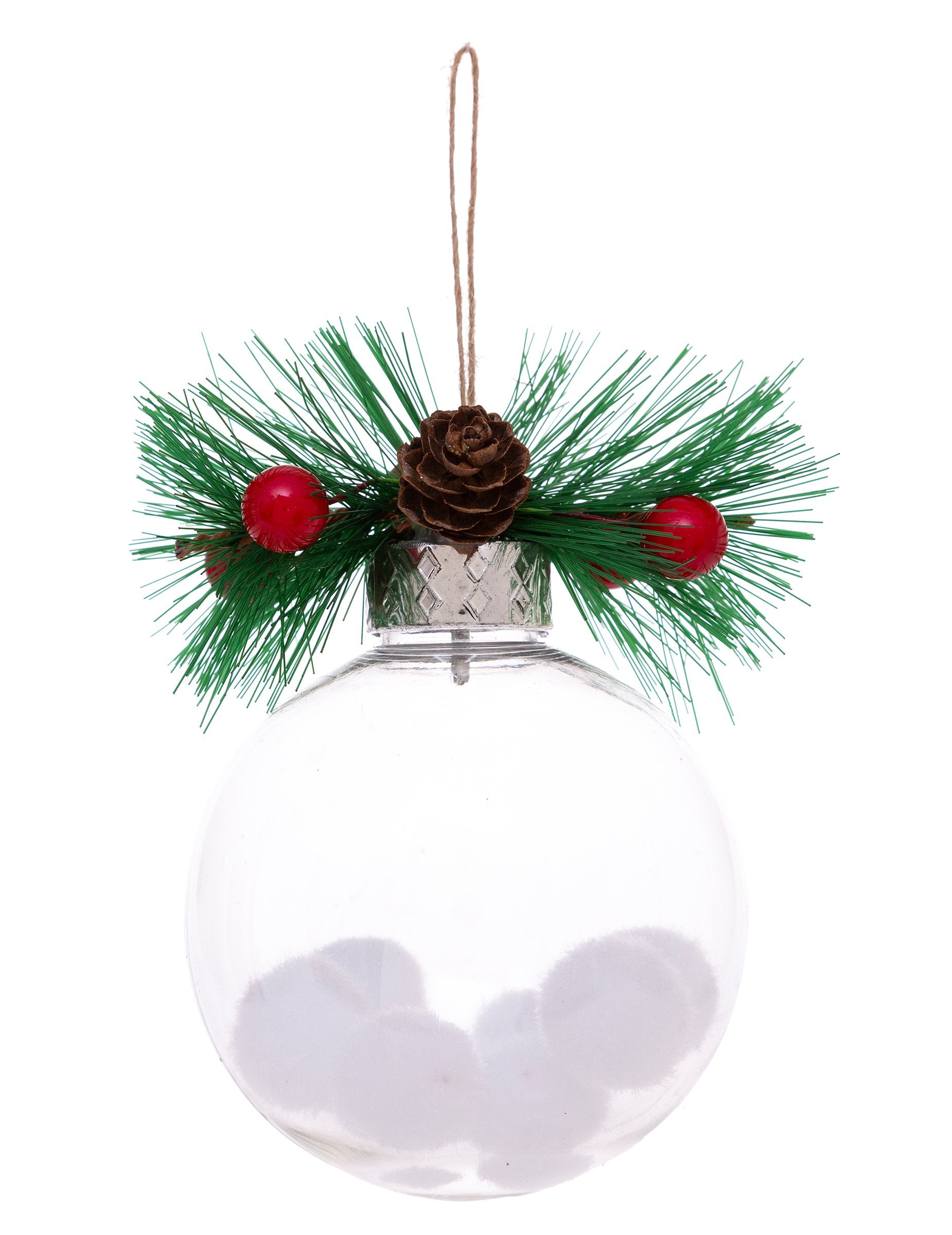 Sublimez votre décoration festive avec cette boule de Noël de 8 cm au style authentique. Ce modèle aléatoire est garni d'une pomme de pin, de jolies baies et de feuillage de sapin. L'intérieur offre un décor naturel varié, mêlant fausse neige et éléments végétaux pour un rendu forestier. Parfaite pour orner votre sapin, cette suspension apportera une note de douceur naturelle à vos fêtes de Noël.