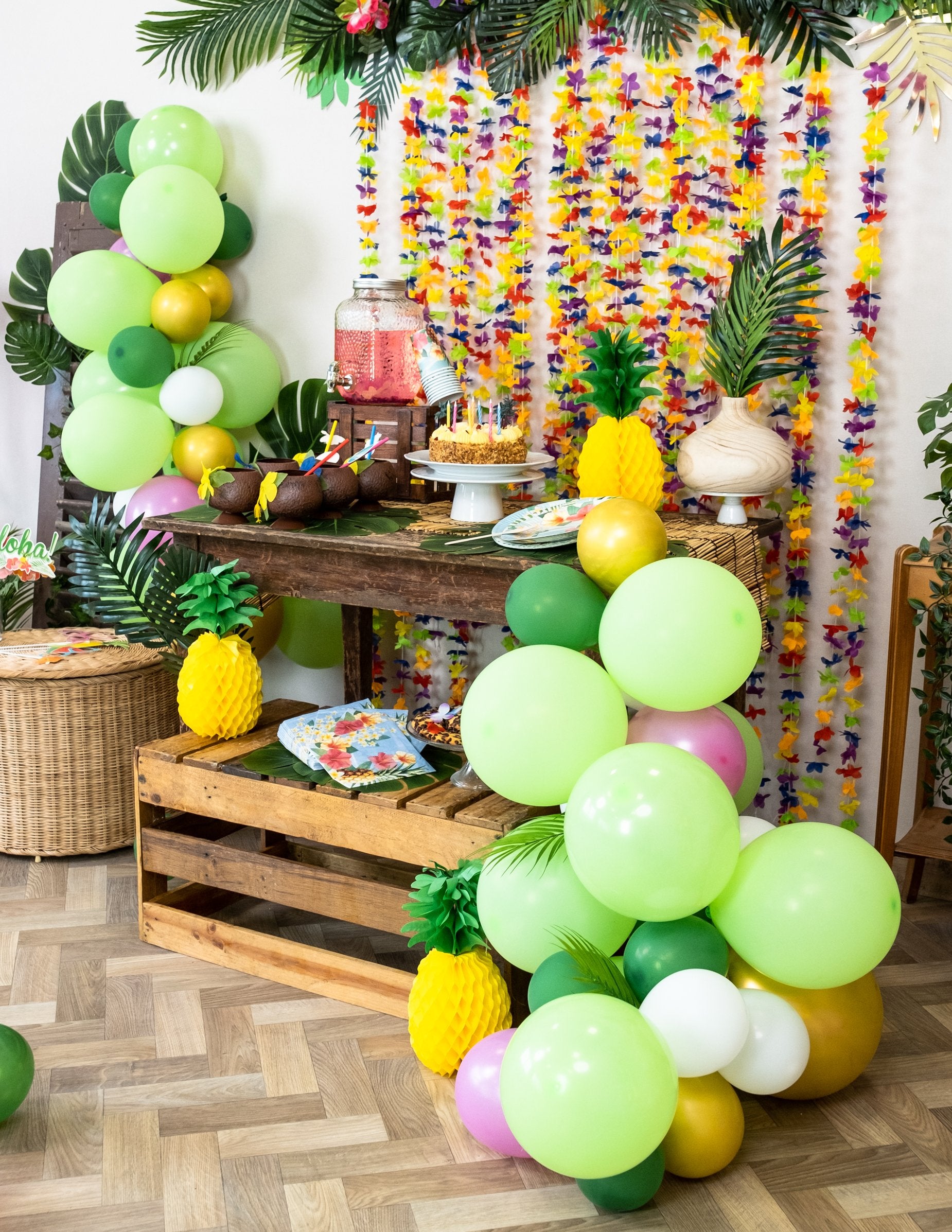 Jednoduše sestavte prvky po nafouknutí, abyste získali a elegantní tropický balónový oblouk. Toto arch bude ústředním prvkem vaší dekoracenarozeniny nebo vaše slavnostní událost na téma džungle !