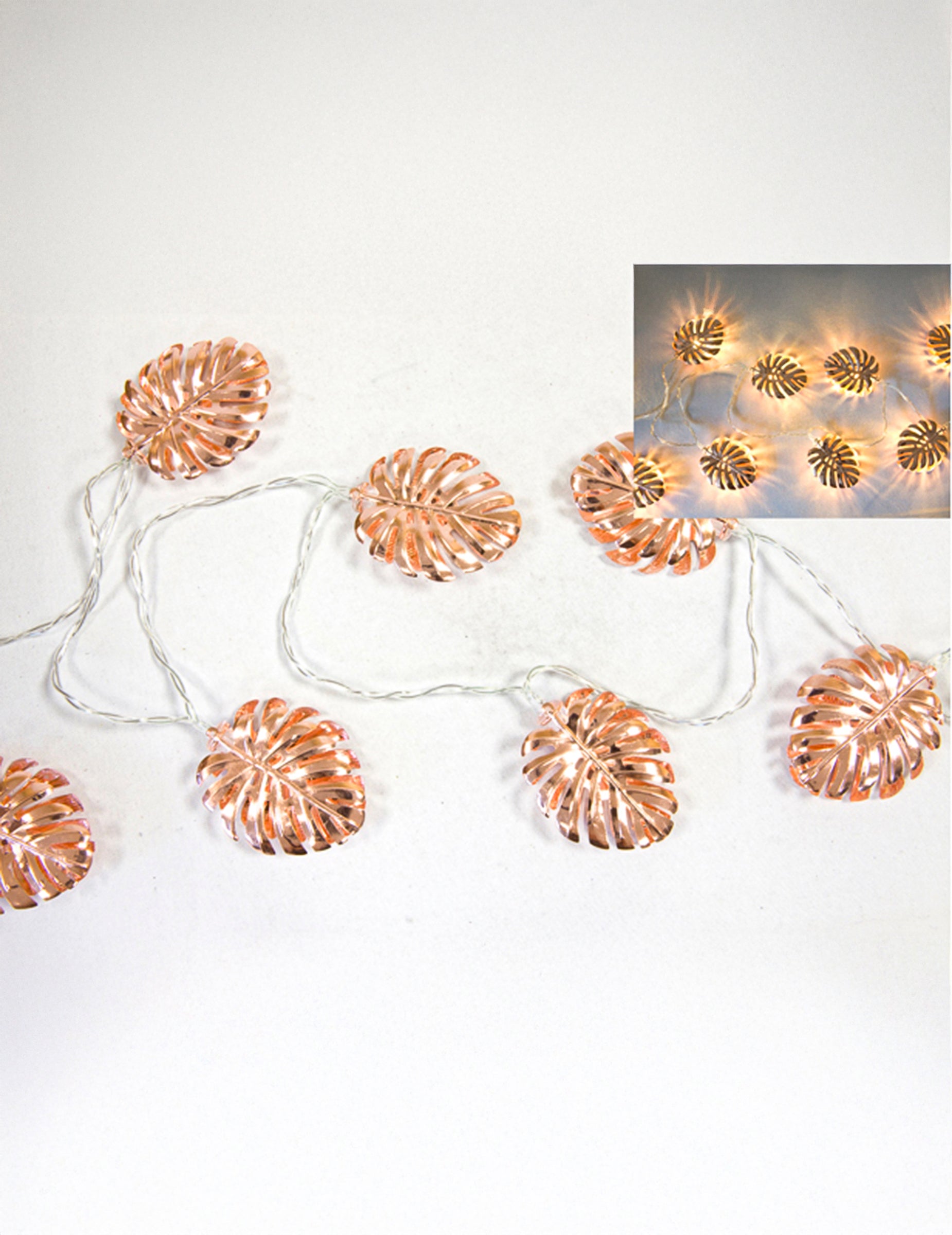 S délkou 1,65 m je tato světelná girlanda je ideálním doplňkem pro zkrášlení vašeho domova. Má hezkou tropické listy se vzhledem růžového zlata a vyžaduje 2 AA baterie (nejsou součástí balení), aby svítily. Vneste s tímto do svého pokoje dotek šik exotiky věnec z listů růžového zlata původní.