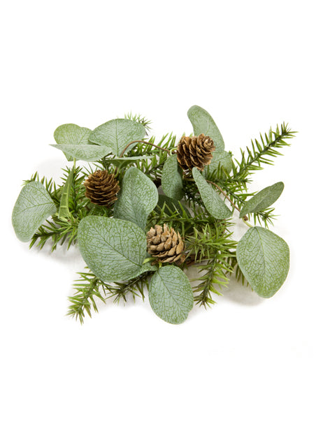 S průměrem 20 cm, toto středobodem přináší do vaší dekorace nádech zeleně. Spojuje listy eukalyptu, šišky a větve jedle pro autentický vzhled. Tento doplněk je ideální pro vytvoření teplé lesní atmosféry při večeři. Vánoce.