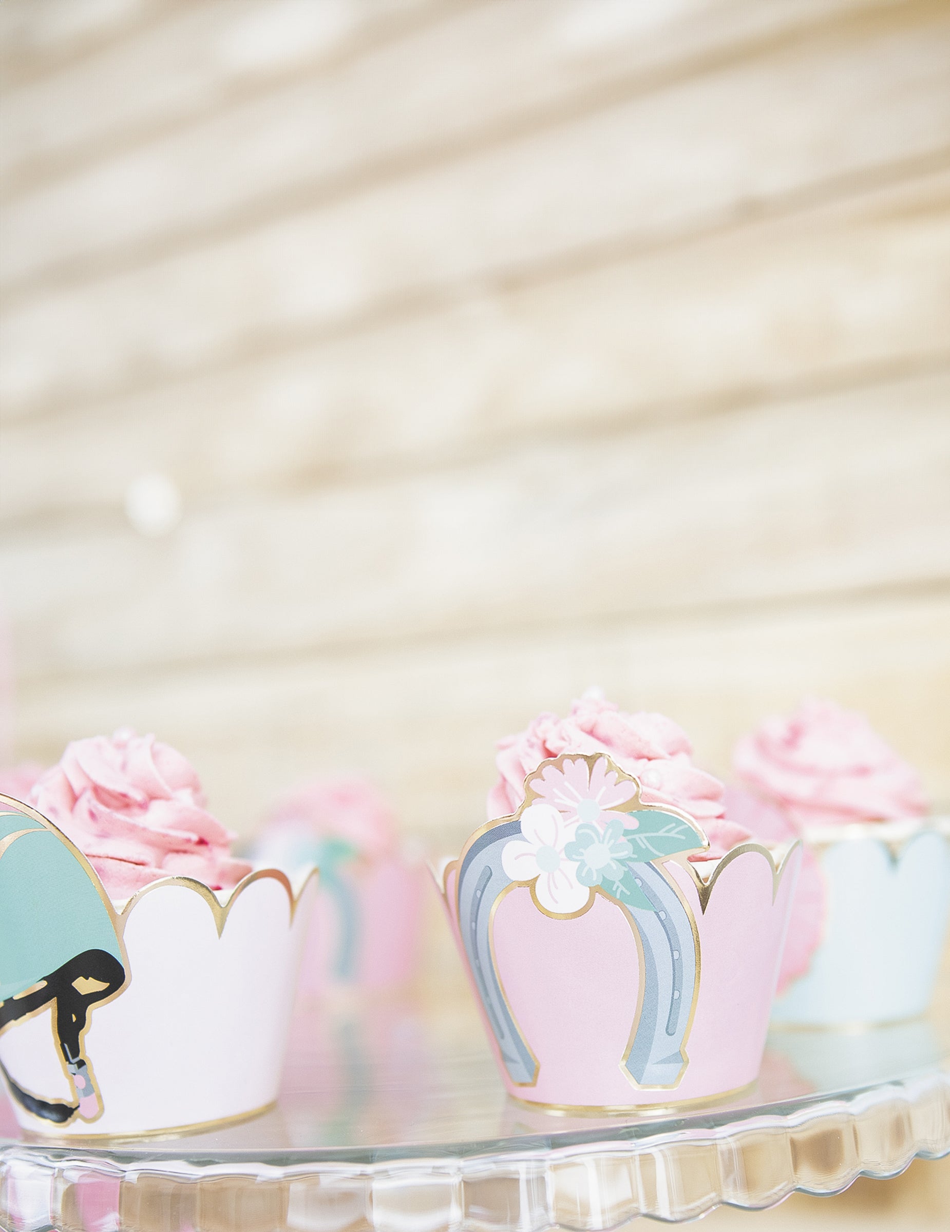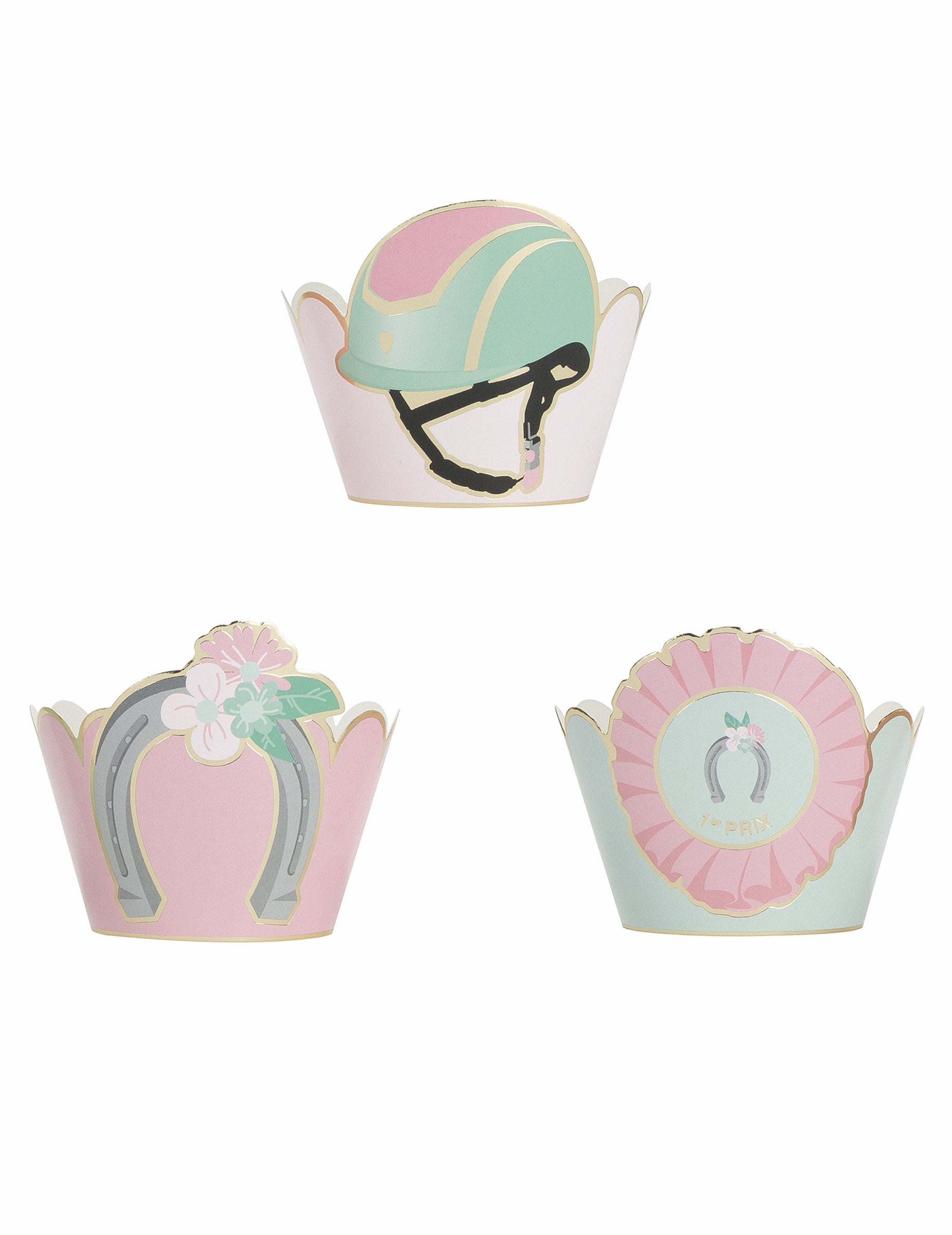 Vneste do svého pečiva dotek jezdecké elegance s touto sadou 6 kusů kryty forem na košíčky. Každý obrys s jemnými pastelovými modrými a růžovými odstíny ilustruje vzory jako podkova, bomba nebo proud. Tyto doplňky jsou ideální pro vylepšení vaší dekorace během a narozeniny na téma koně.