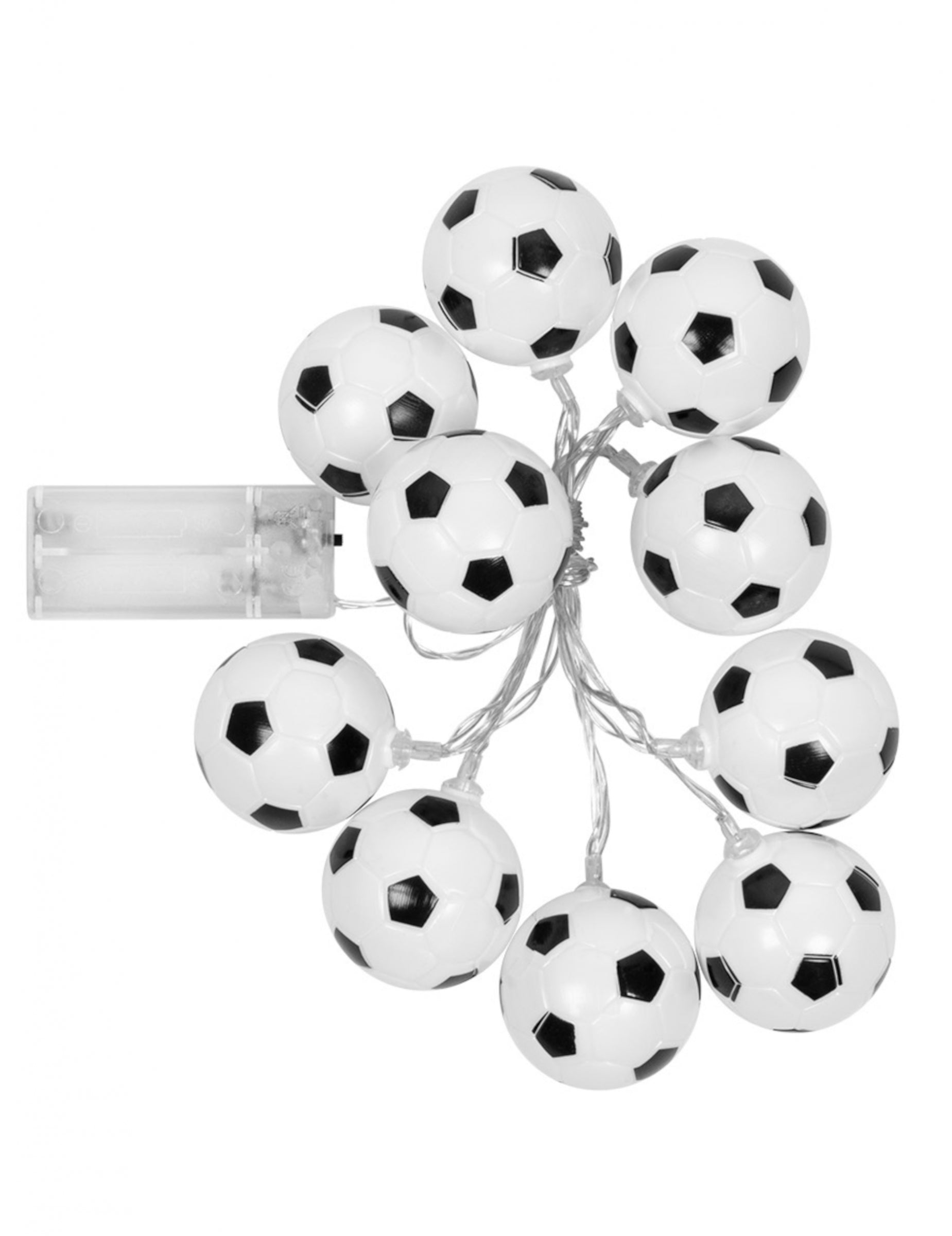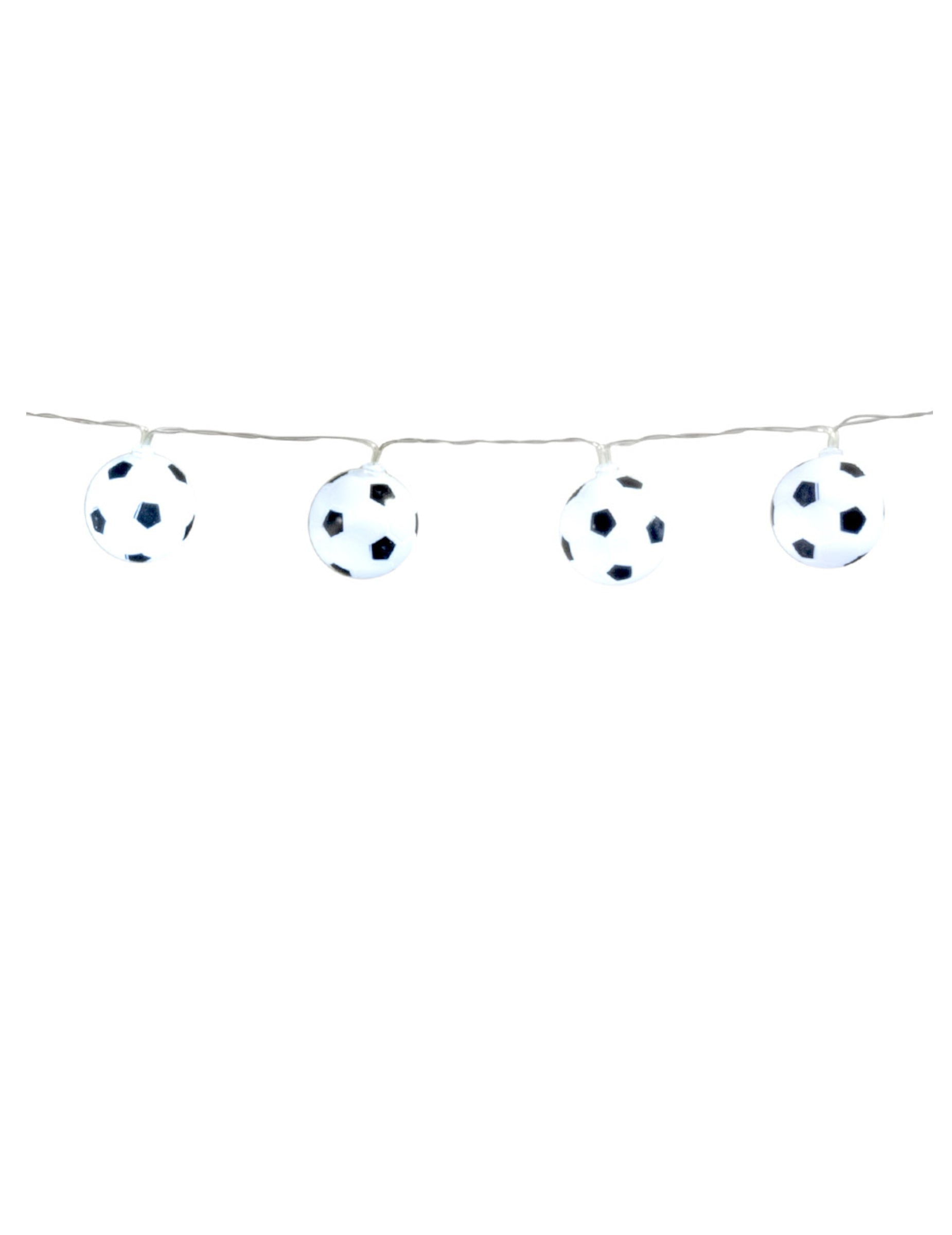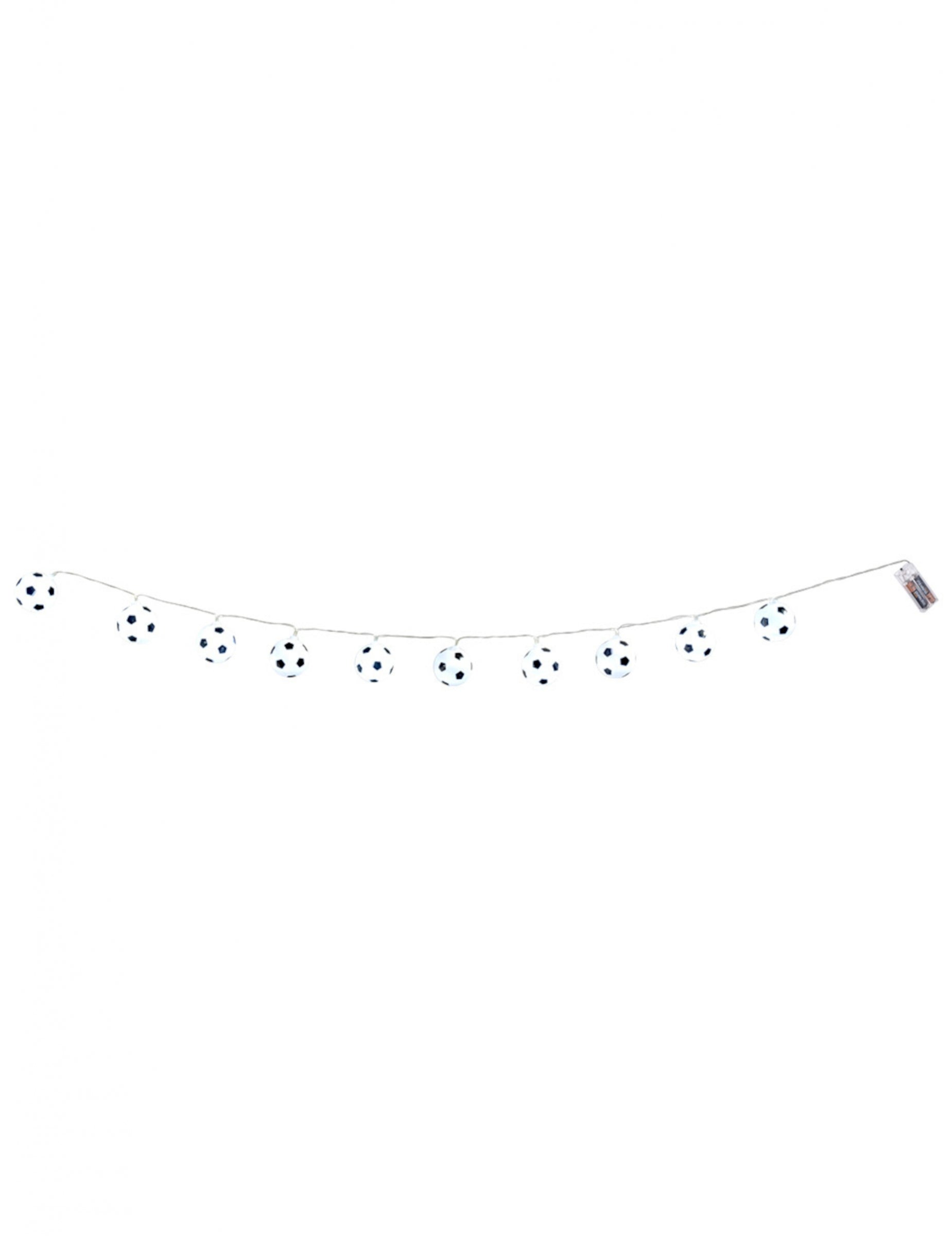Přineste s tím sportovní nádech světelná girlanda zdobené mini fotbalové míče. S celkovou délkou 140 cm, Toto příslušenství funguje na 2 baterie AA (prodávají se samostatně). Zda slavit a narozeniny téma nebo k výzdobě ložnice mladého fotbalového fanouška, toto originální osvětlení vytvoří jedinečnou atmosféru.