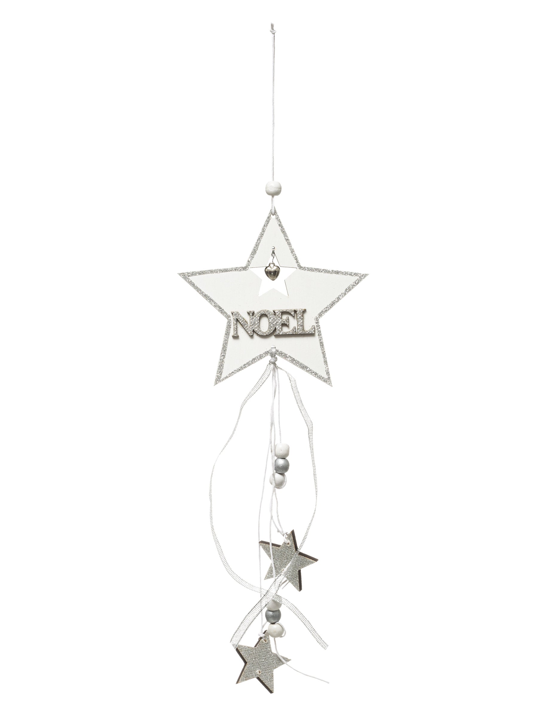 S výškou 35 cm, toto pozastavení vyniká svou velikostí hvězda centrální zobrazení zprávy Vánoce. Prvky stříbrných hvězd jsou jemně připevněny ke stužkám pro vzdušný efekt. Pověsit tohle hvězda přinést vám kouzelnou poznámku Vánoční dekorace.